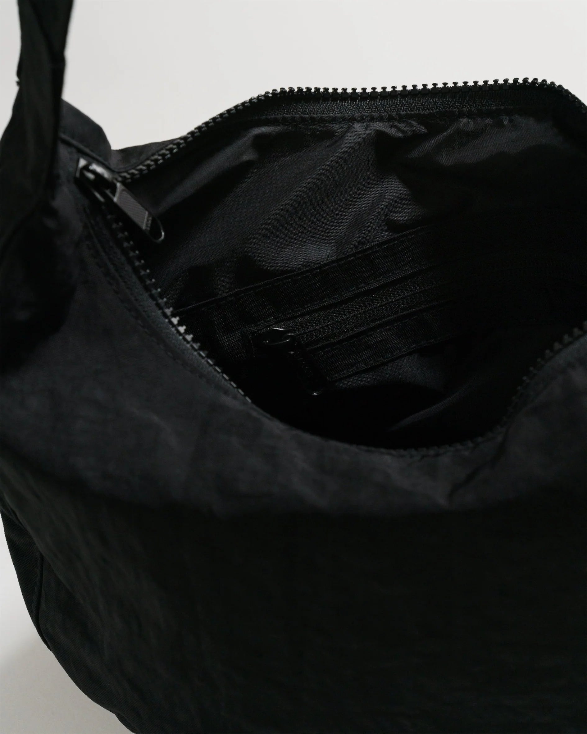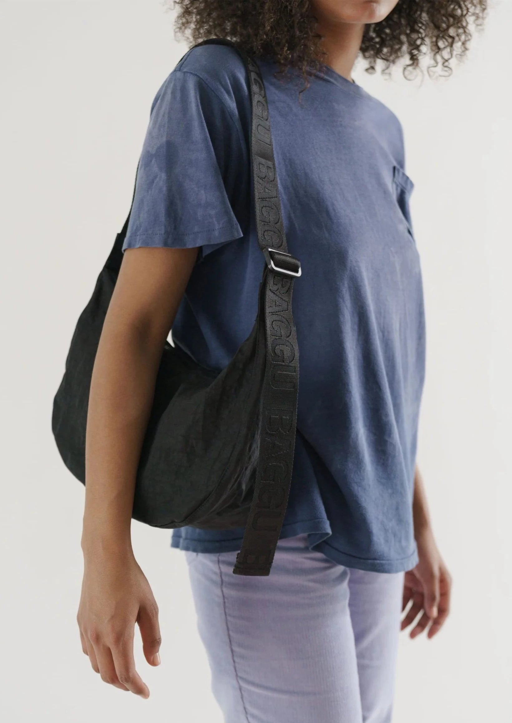 Practical doesn’t have to be boring. This Medium Nylon Crescent Bag is effortlessly casual and large enough to carry more than just the essentials. Wear it slung over your shoulder or crossbody for a hands-free experience. Complete with two interior pockets that make it easy to stay organized.