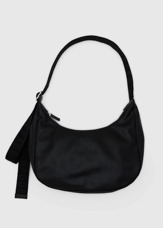 Medium Recycled Leather Crescent Bag - Black