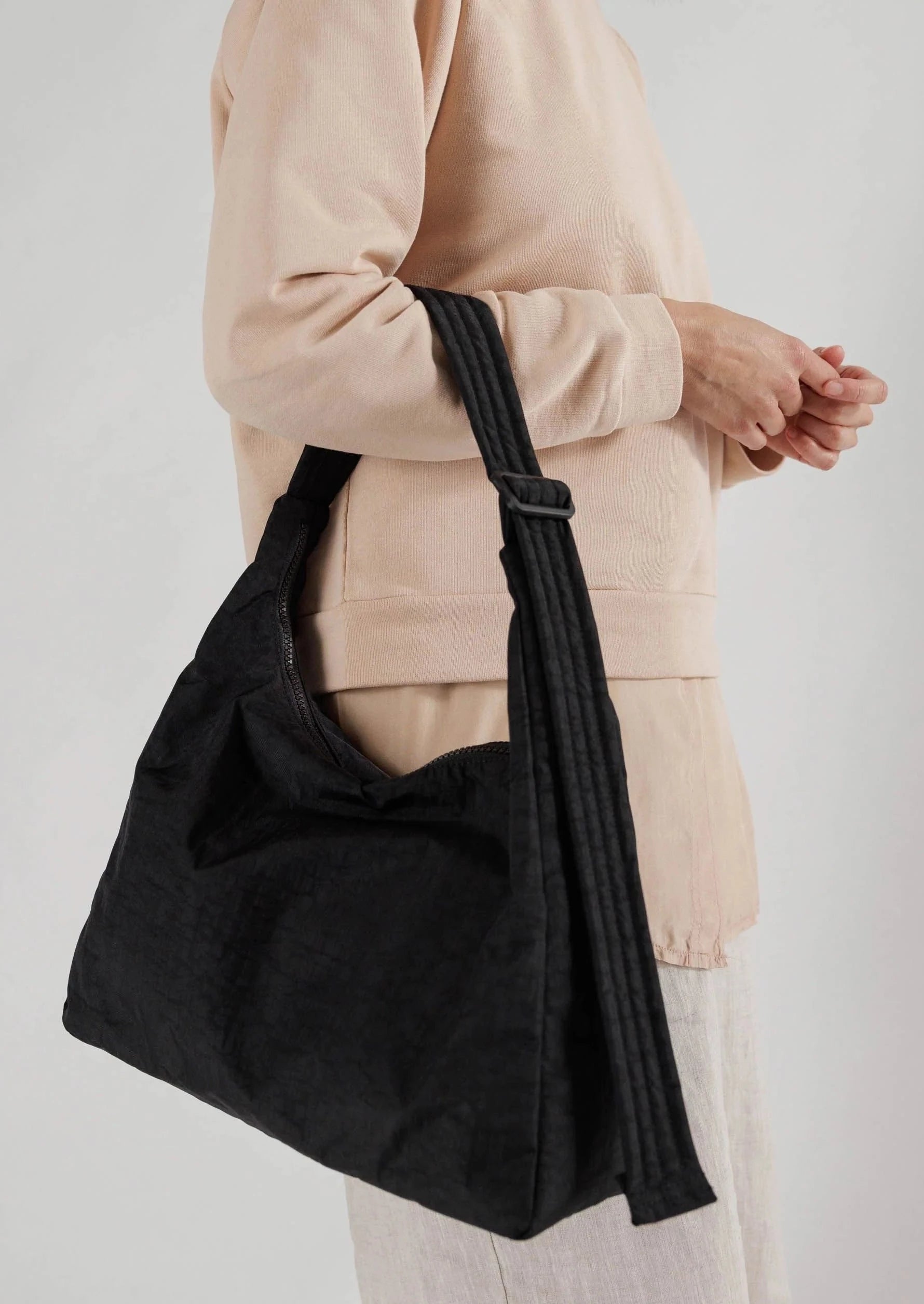 - Recycled heavyweight nylon, recycled ripstop nylon lining