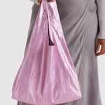 Baggu is an American brand known for its affordable, sustainable bags made from recycled materials. Inspired by the design of a plastic shopping bag, its signature product—the Standard Baggu—is made from ripstop nylon and holds 2–3 times more than a disposable bag. Committed to reducing waste and eliminating single-use plastics, Baggu designs practical, everyday styles using minimal materials to lower costs and fabric waste.