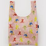 Baggu is an American brand known for its affordable, sustainable bags made from recycled materials. Inspired by the design of a plastic shopping bag, its signature product—the Standard Baggu—is made from ripstop nylon and holds 2–3 times more than a disposable bag. Committed to reducing waste and eliminating single-use plastics, Baggu designs practical, everyday styles using minimal materials to lower costs and fabric waste.