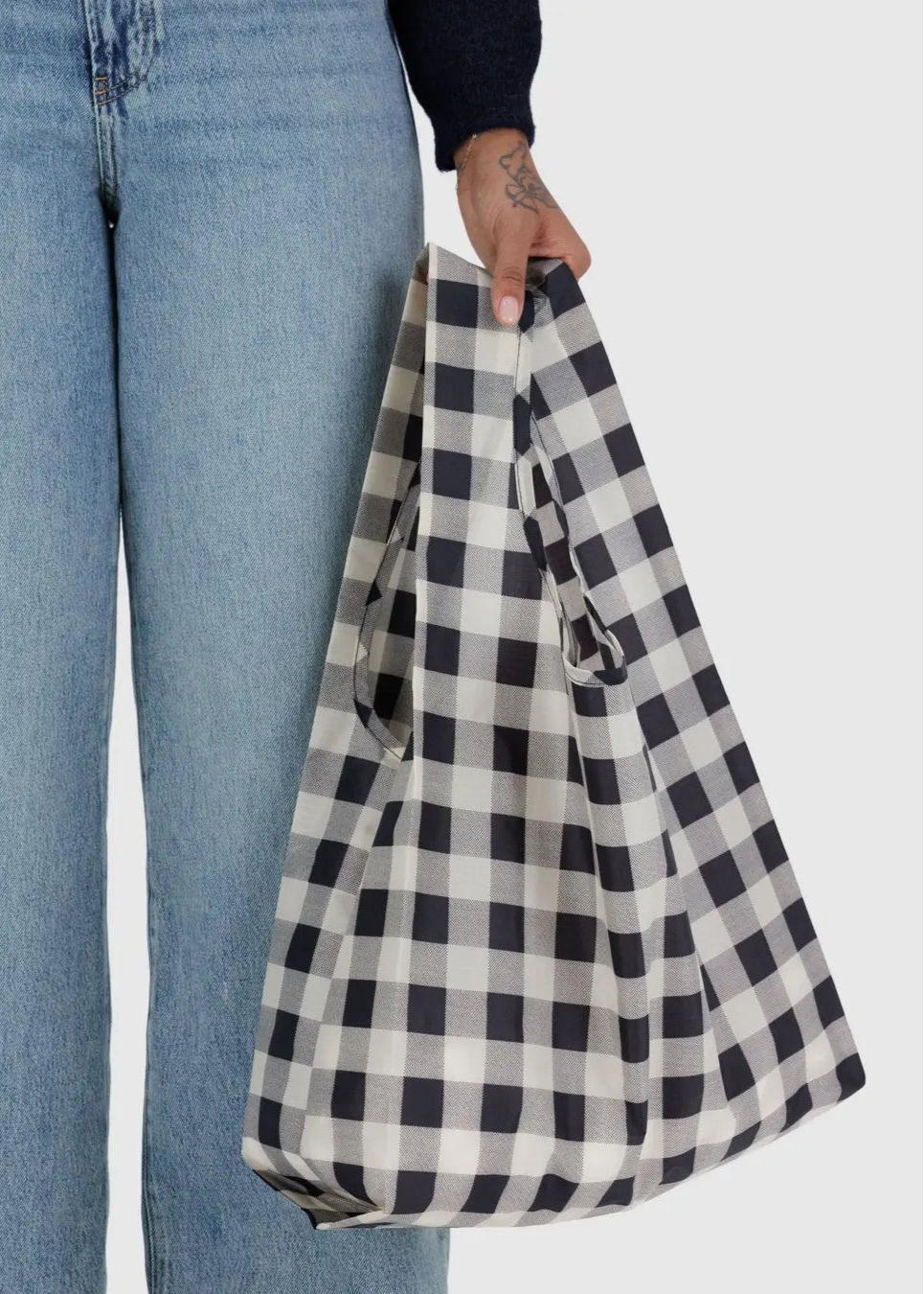 Baggu is an American brand known for its affordable, sustainable bags made from recycled materials. Inspired by the design of a plastic shopping bag, its signature product—the Standard Baggu—is made from ripstop nylon and holds 2–3 times more than a disposable bag. Committed to reducing waste and eliminating single-use plastics, Baggu designs practical, everyday styles using minimal materials to lower costs and fabric waste.