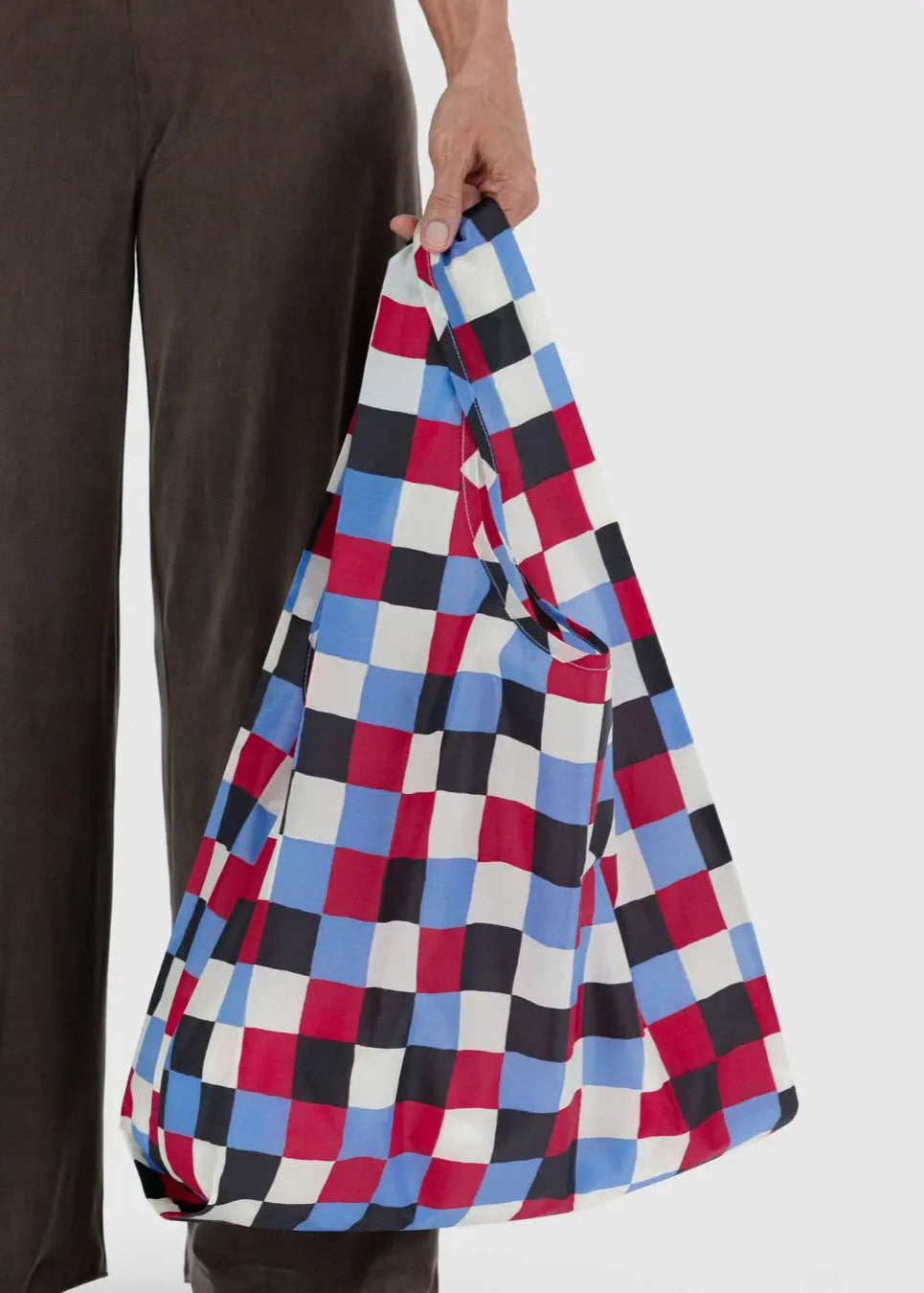 Baggu is an American brand known for its affordable, sustainable bags made from recycled materials. Inspired by the design of a plastic shopping bag, its signature product—the Standard Baggu—is made from ripstop nylon and holds 2–3 times more than a disposable bag. Committed to reducing waste and eliminating single-use plastics, Baggu designs practical, everyday styles using minimal materials to lower costs and fabric waste.