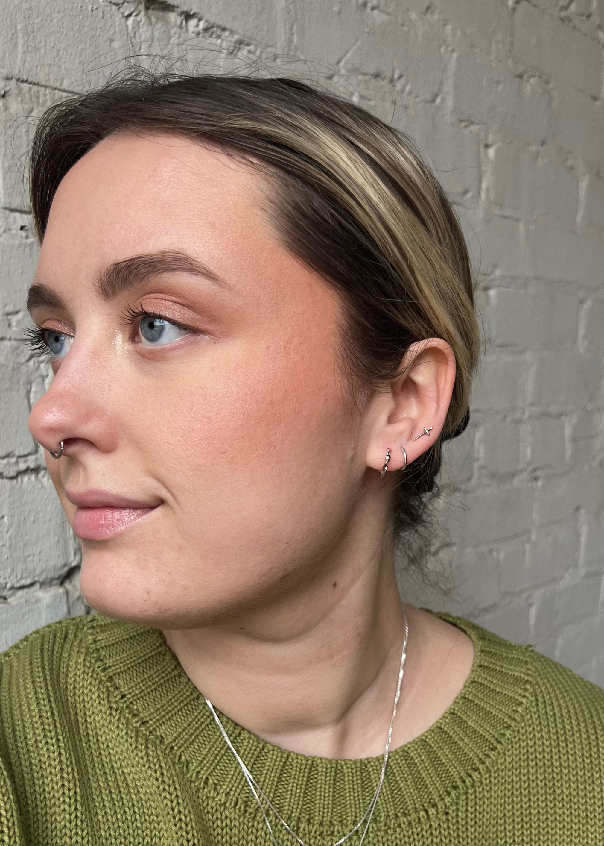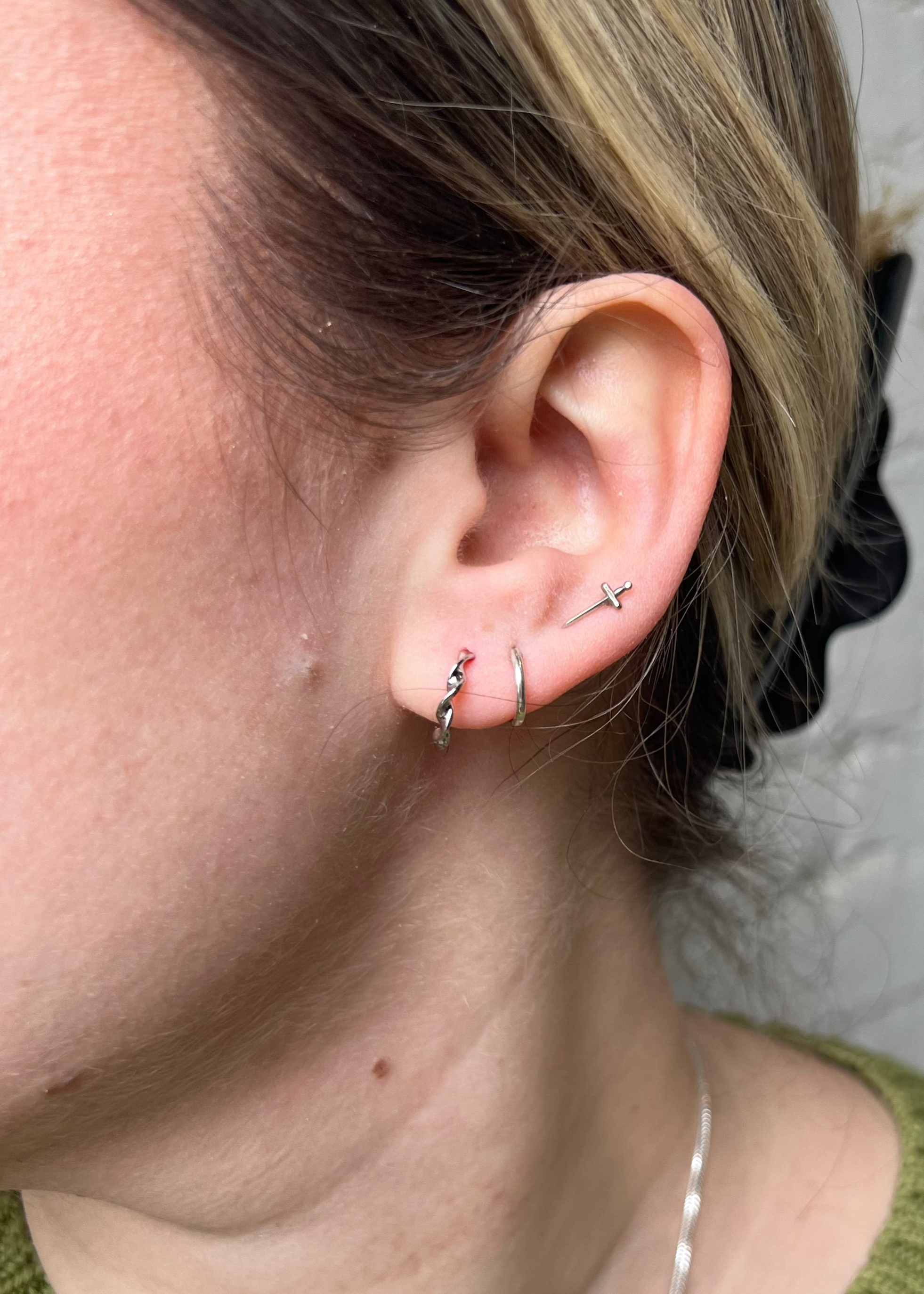 Small twist hoop earrings.