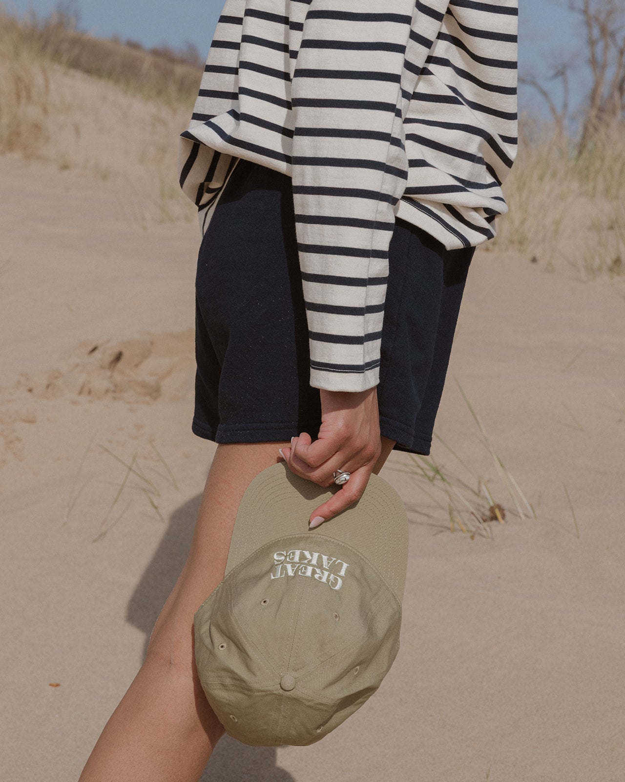 Created by Frances Jaye, this unique hat draws inspiration from the beauty of the Great Lakes. It is the perfect accessory for anyone wanting to show off their love for Michigan with style.