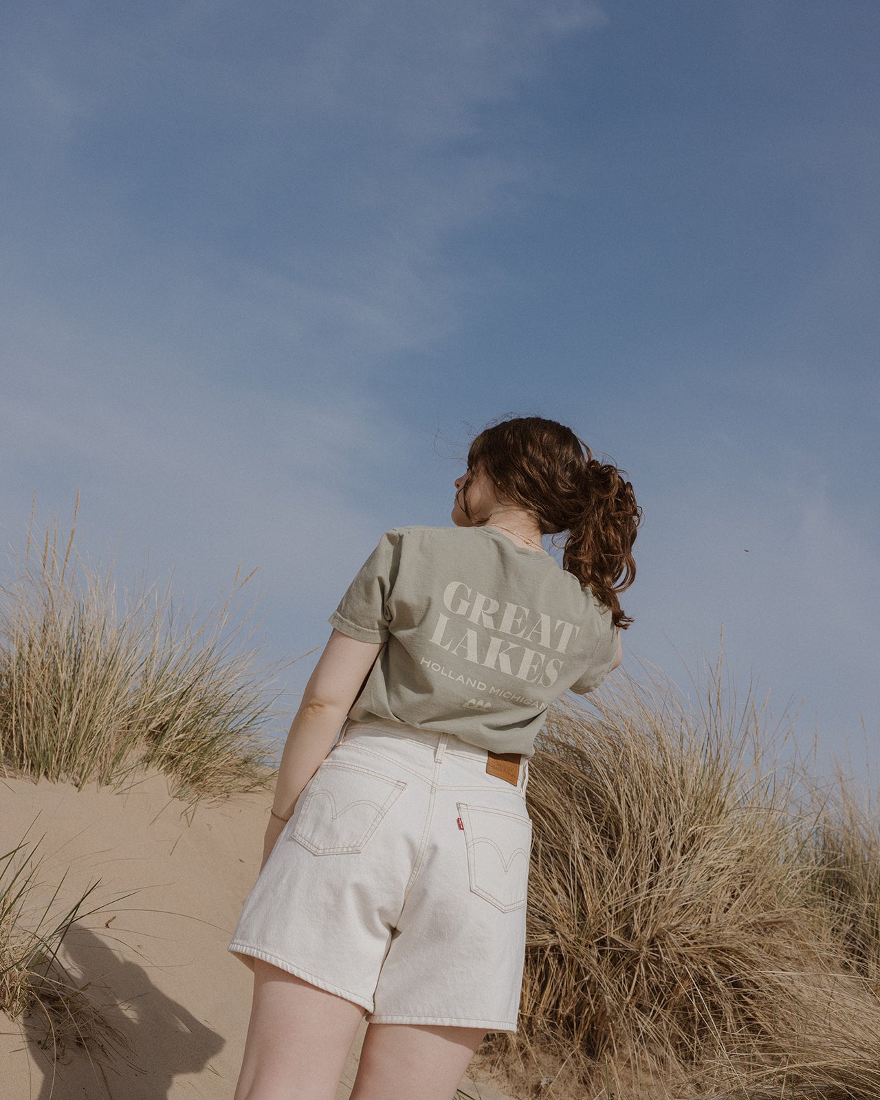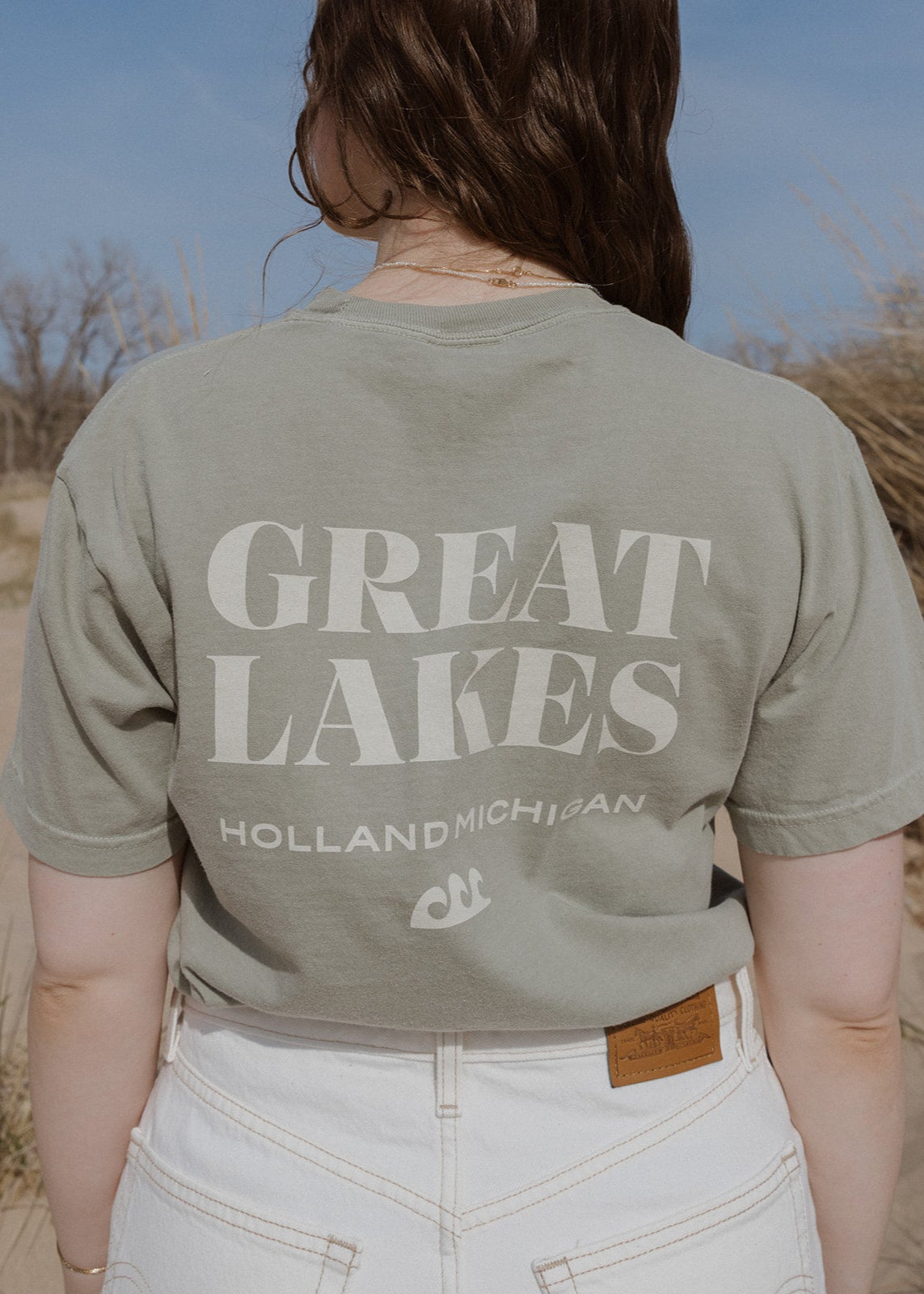 This tee shirt, inspired by the colors of the beach grass along the lakeshore, is perfect for showing love for Michigan's scenic Great Lakes. It's printed on a Comfort Colors tee shirt, making it the ideal choice for fans of the state's beautiful landscapes.