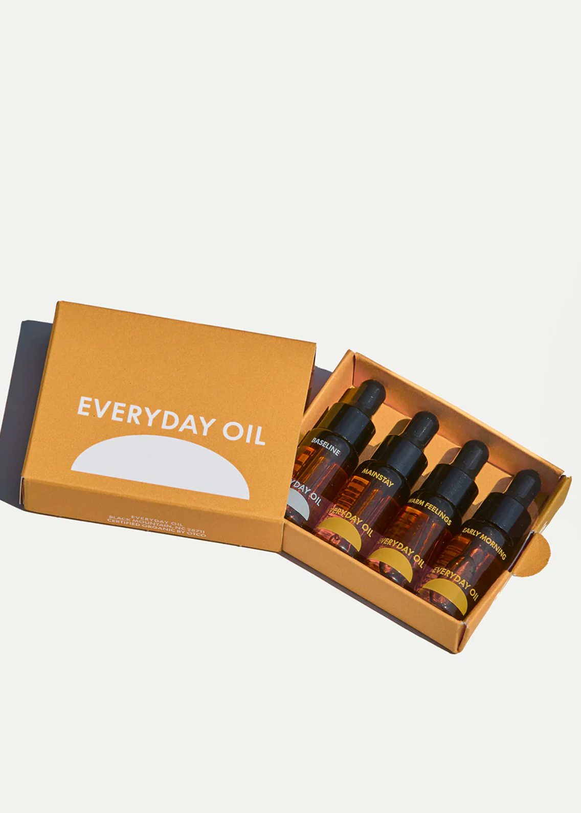 Everyday Oil is a minimalist, multipurpose skincare brand, offering a single, plant-based product designed for use on the face, body, and hair. Crafted from organic and wild-harvested botanical oils, it serves as a cleanser, moisturizer, and overall skin nourisher, suitable for all skin types. The formulation is certified organic, cruelty-free, microbiome-friendly, and non-comedogenic, emphasizing simplicity, sustainability, and inclusivity in skincare.
