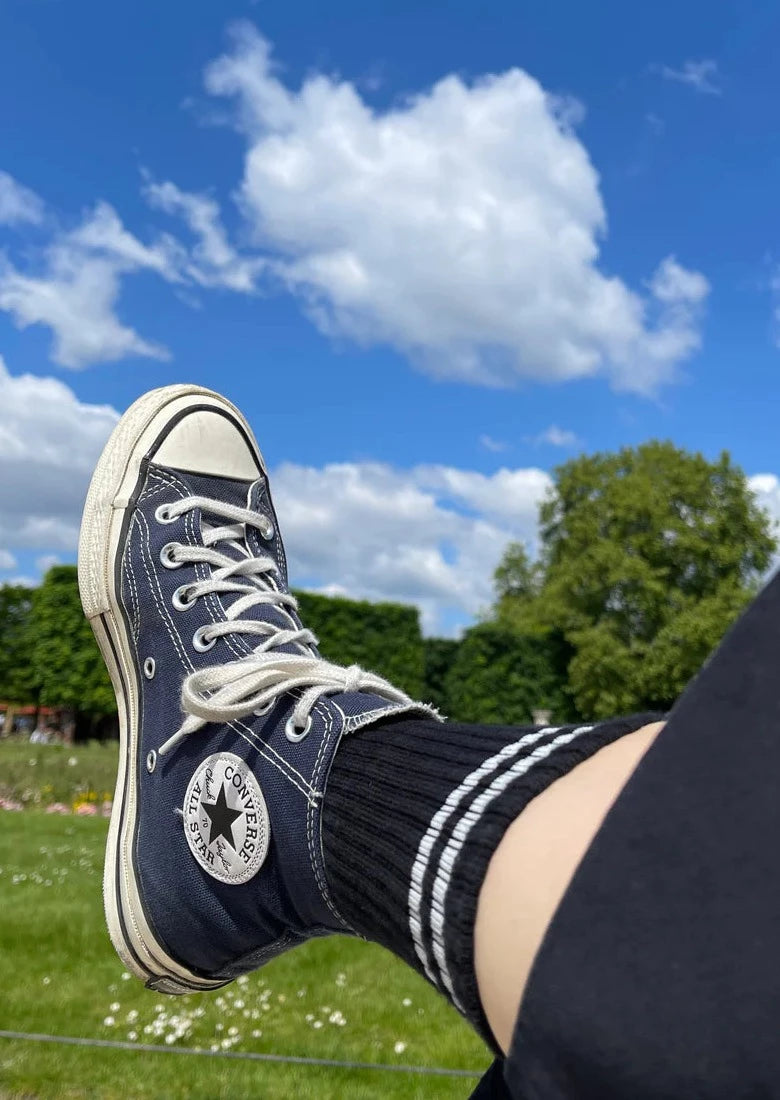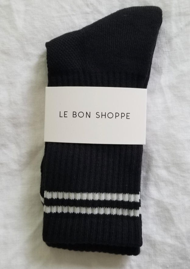 The Boyfriend Sock is a staff favorite. They are the perfect mix of function and fashion creating an effortless sporty vintage charm to any outfit. They are slightly longer than a classic crew and have a contrast double stripe. Durable and comfortable, they upgrade any outfit. Works with well-worn denim and Converse chucks.