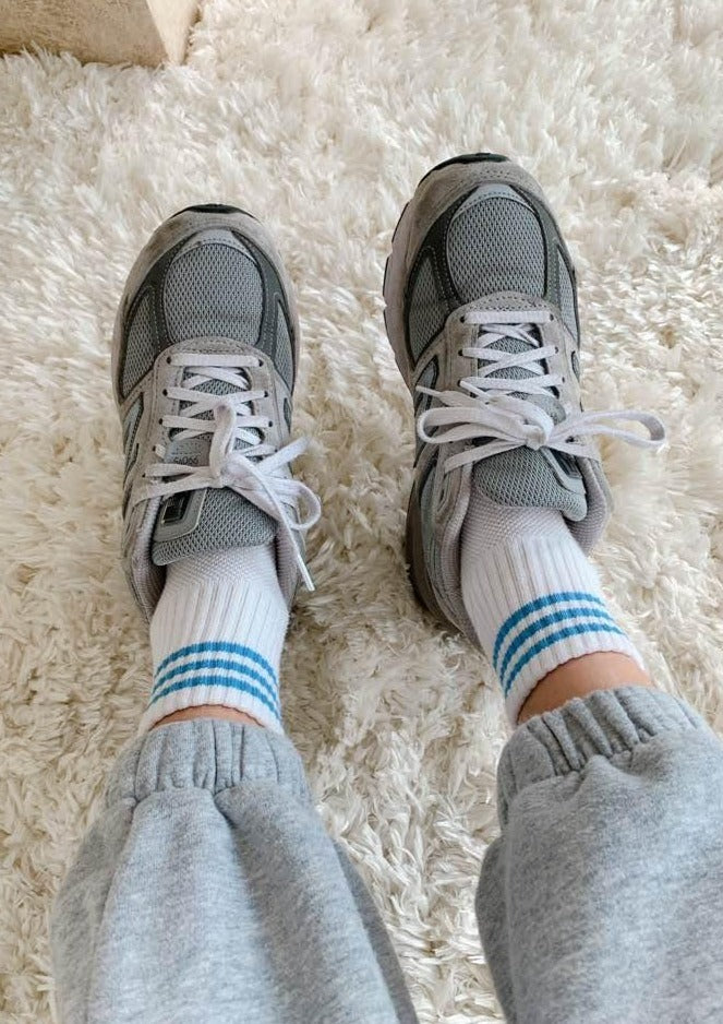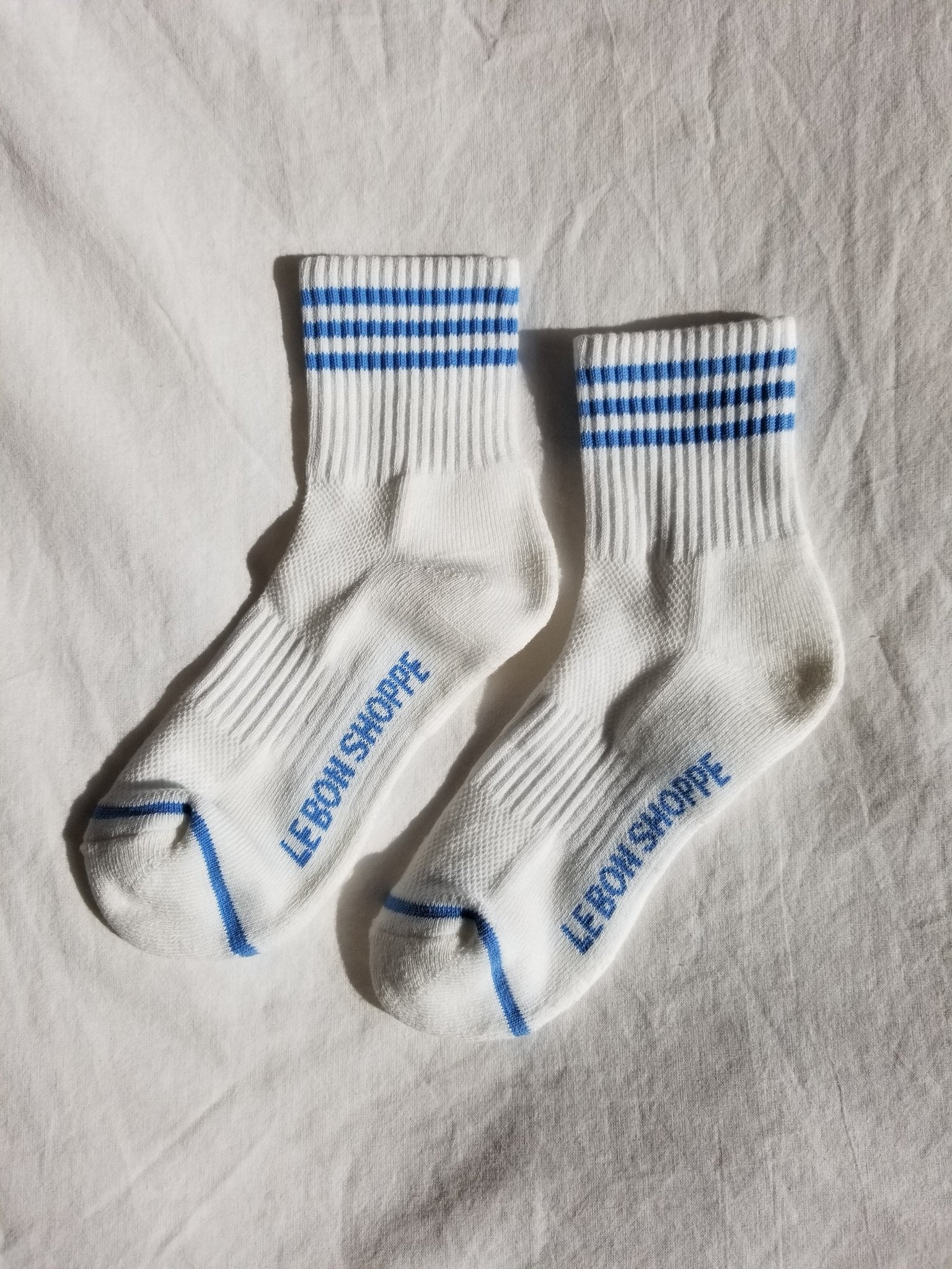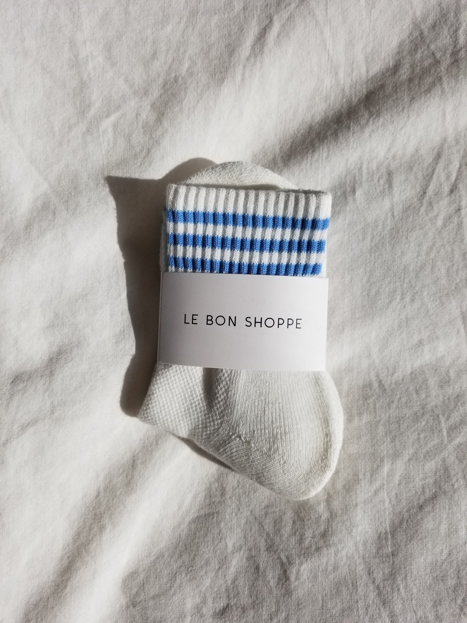Super comfy ankle crew socks. These beauties feature a triple contrast stripe at the opening and a shorter classic crew sock length. She is a universally quintessential sock.
