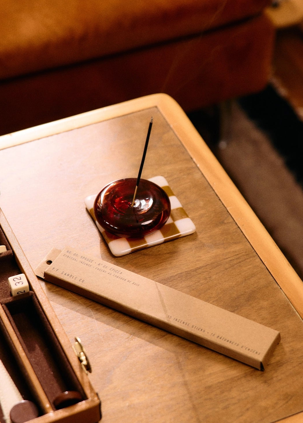 Dense forest floor, sunshine and snow, corner tree lots. Notes of Winter citrus, fresh snow, blue spruce. Incense quickly transforms a room: transformative smoke uplifts the space while our signature scents linger for hours even after extinguishing.