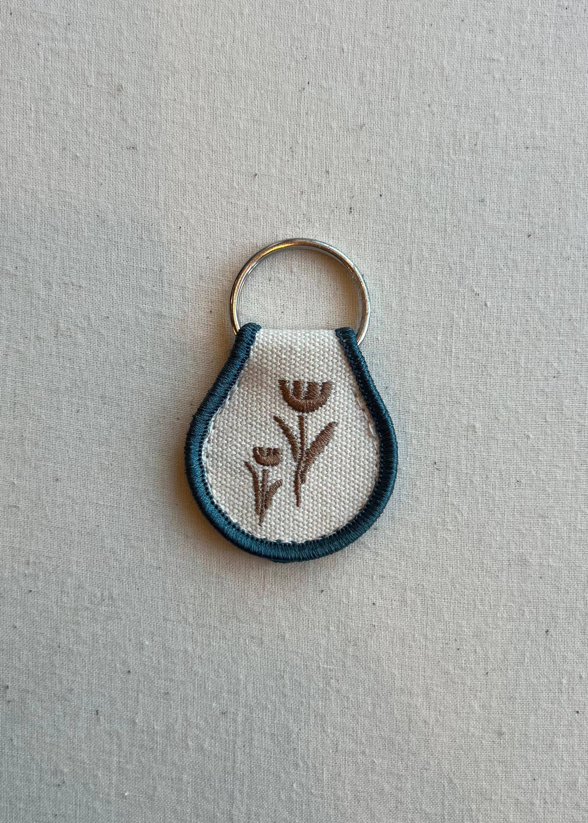 Show your keys some love with patch keychains. Embroidered with tulips and showing your hometown pride. Custom made for Frances Jaye!