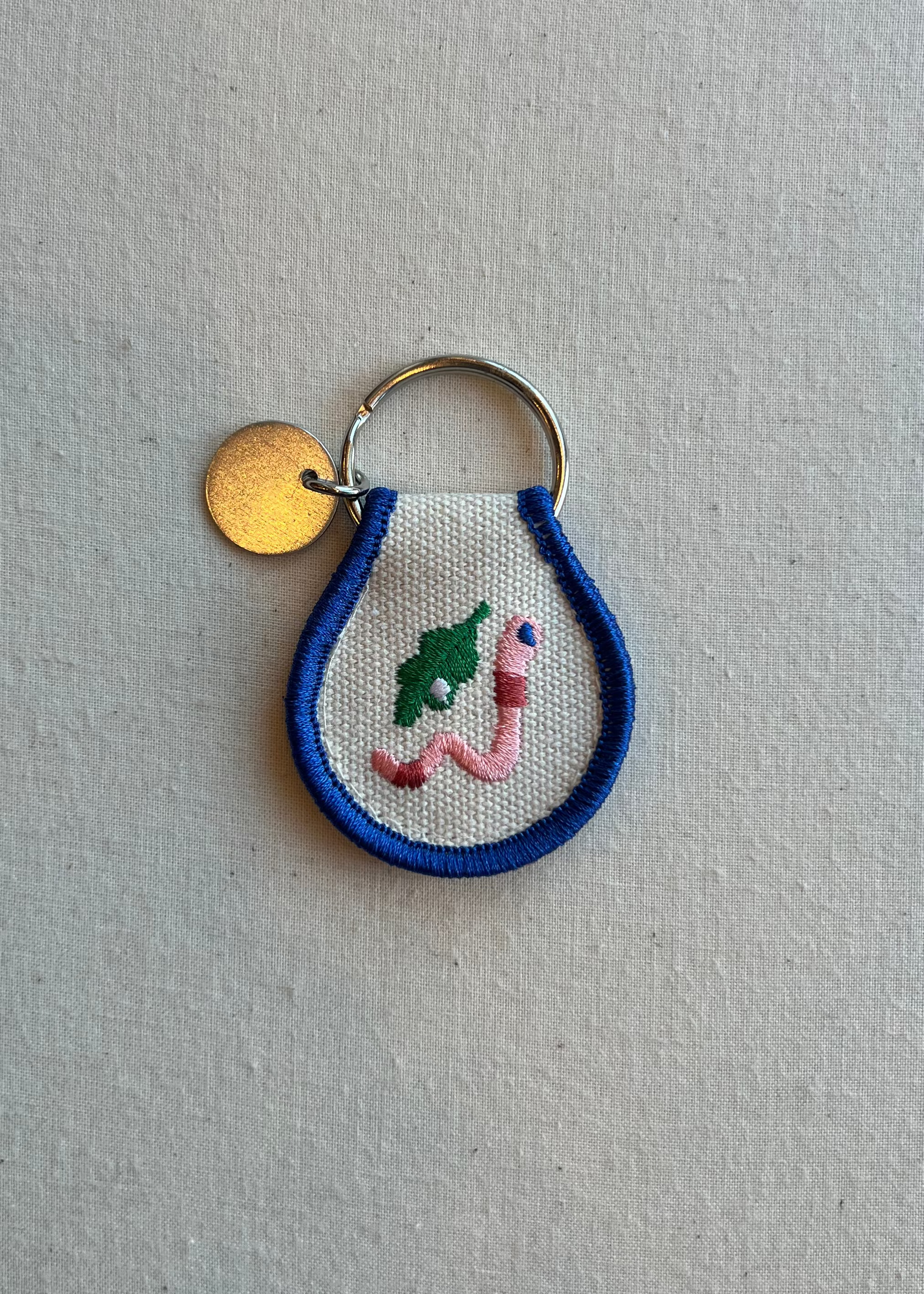 Super cute, double-sided, raised embroidered keychain with 3-dimensional worm. Made with high-quality materials for a durable, long-lasting accessory.