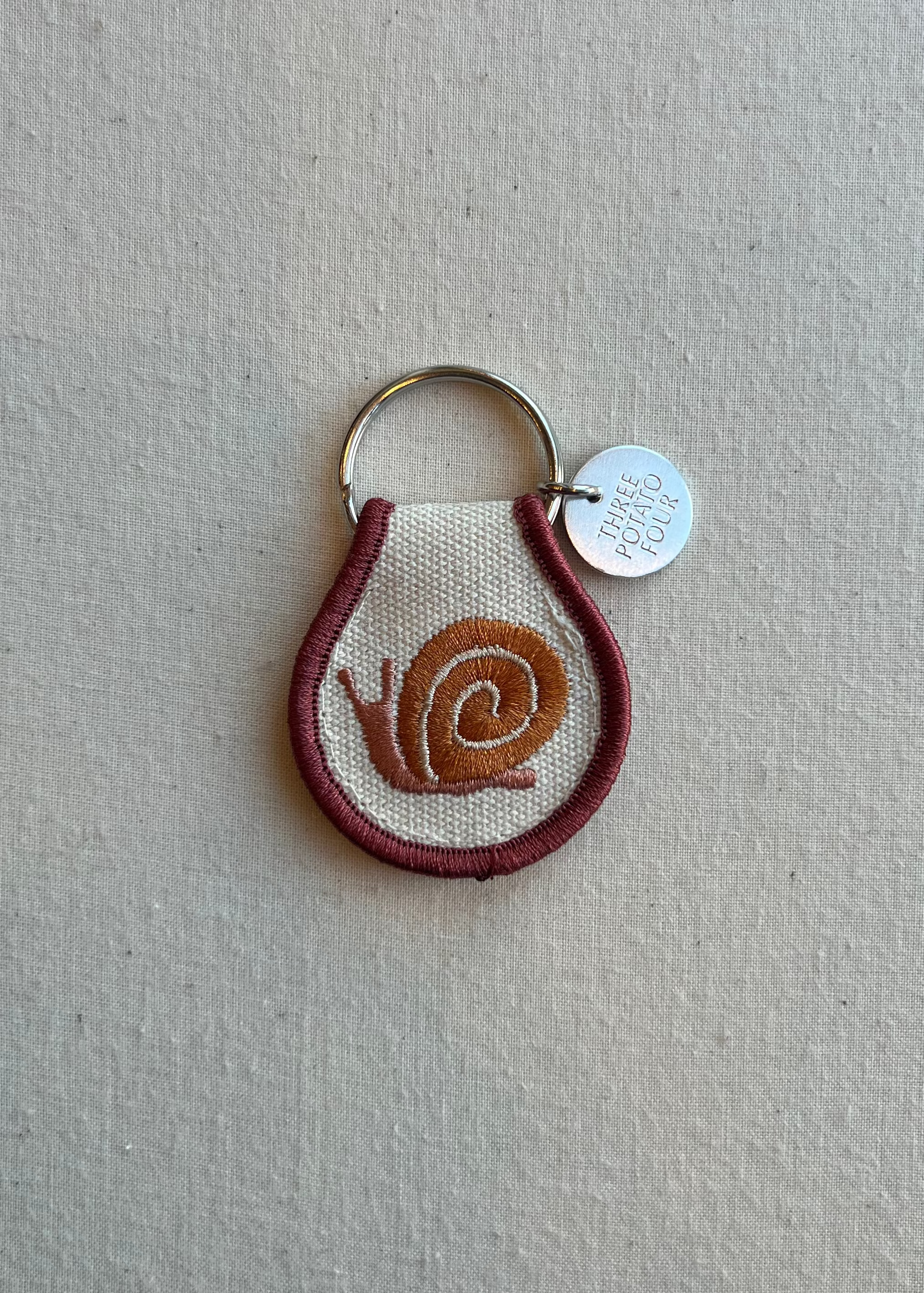 Super cute, double-sided, raised embroidered keychain with 3-dimensional snail. Made with high-quality materials for a durable, long-lasting accessory.