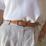 A closet staple, made with quality and timelessness, this vegetable tanned black leather belt features a nickel buckle. It's versatility and minimal design lends it to being worn every day with any outfit.