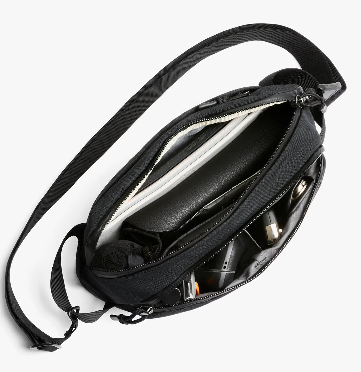 This rugged little sling keeps your everyday gear at hand, and out of your pockets, while you’re out adventuring. Featuring a front pocket with internal divider, a main compartment with a soft-lined phone sleeve, hidden rear pocket, and adjustable webbing strap with magnetic clasp.