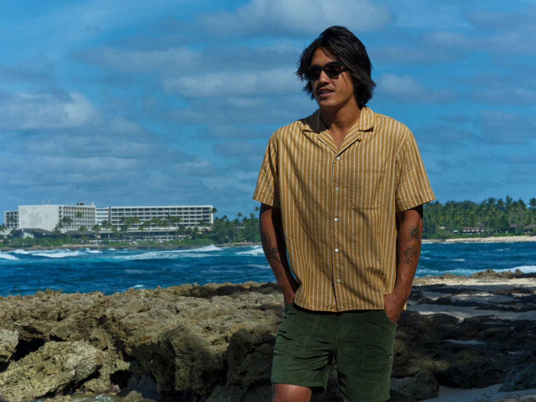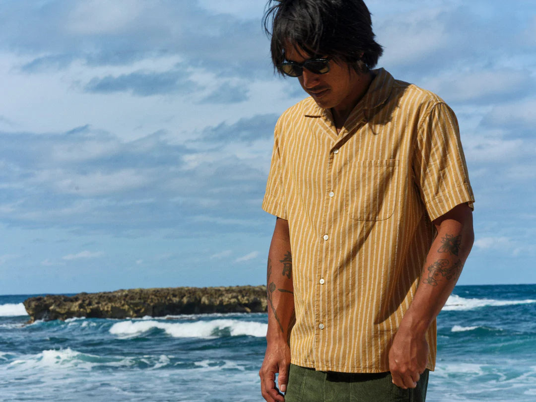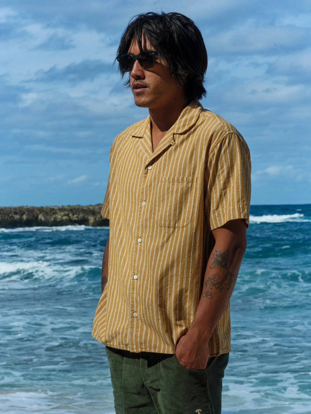 Here's to feeling good all the time. A classic camp shirt in intricate dobby fabric.