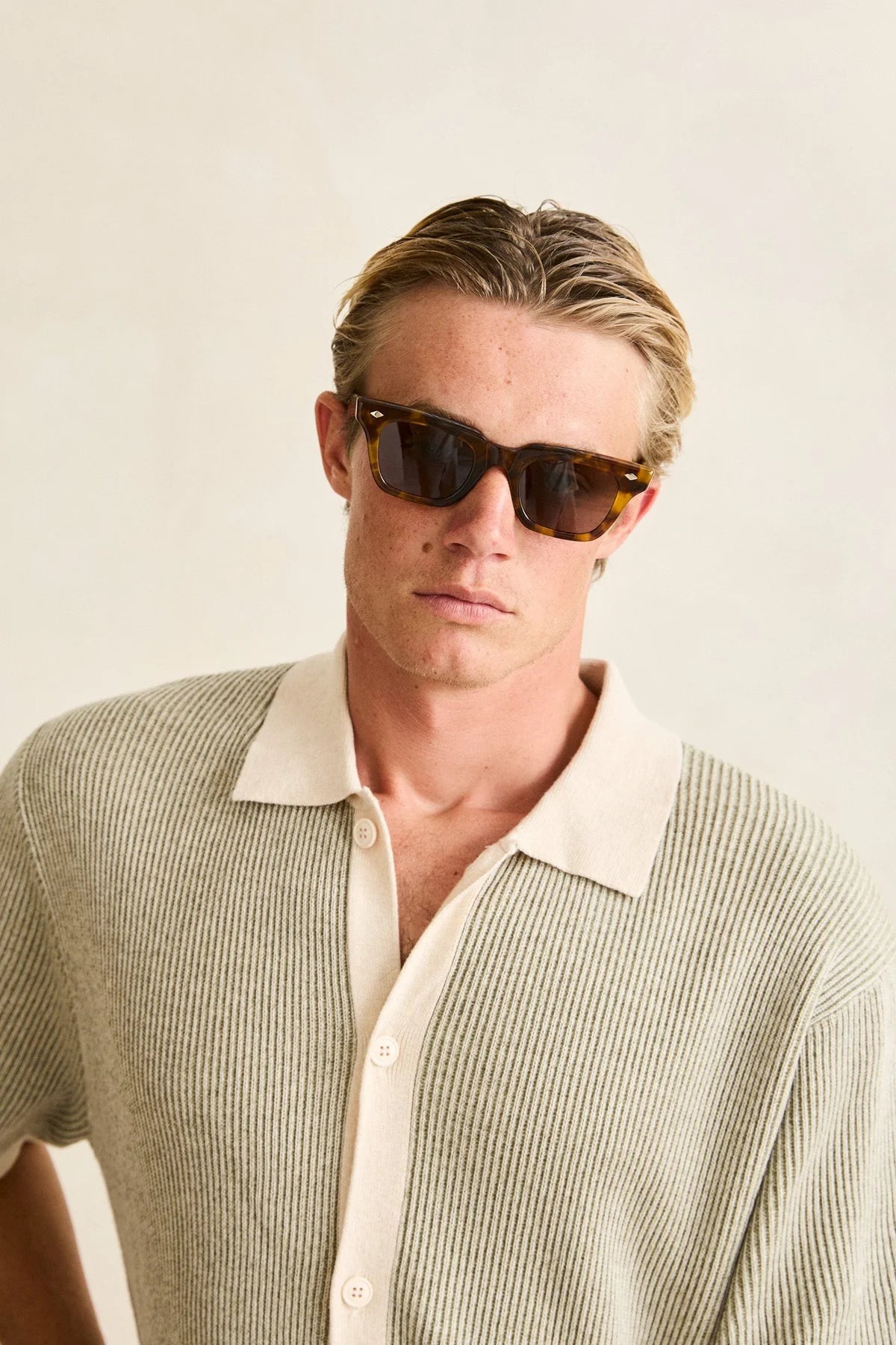 The Hi Lo Knit Button Up is built from soft striped knit with ribbed trims for structure. Featuring a straight hem, button closure, and natural tone, it's an elevated layer that pairs coastal ease with subtle texture.