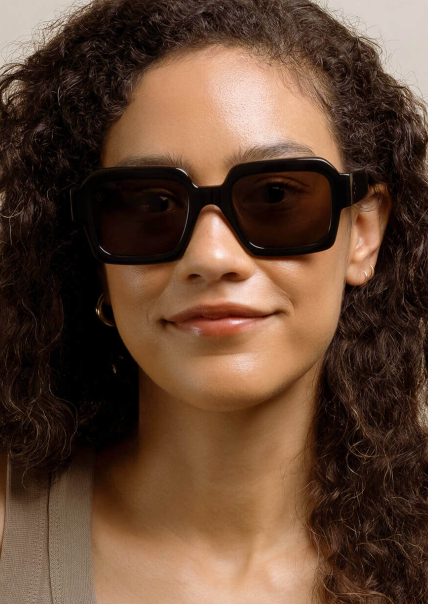 These curvy, oversize sunglasses provide full coverage and throwback style, while the sculpted temples give the frame a refined edge.