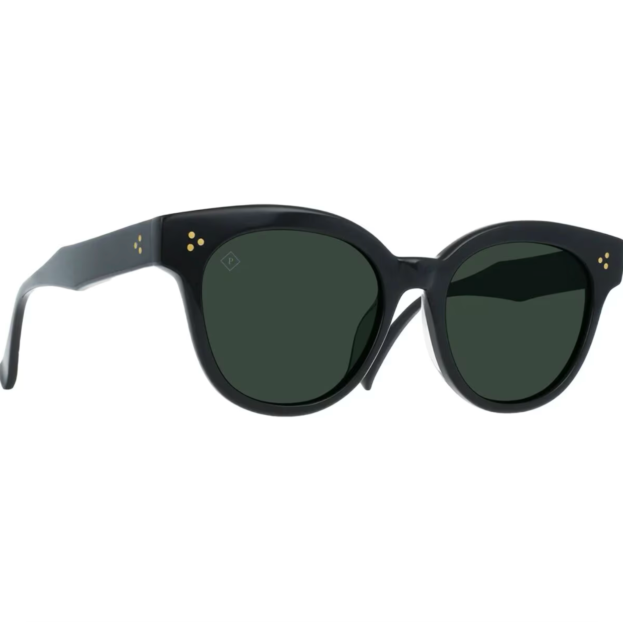 The large, square temples compliment the elegant curves, and robust triple-dot hardware adds just the right amount of sophistication.