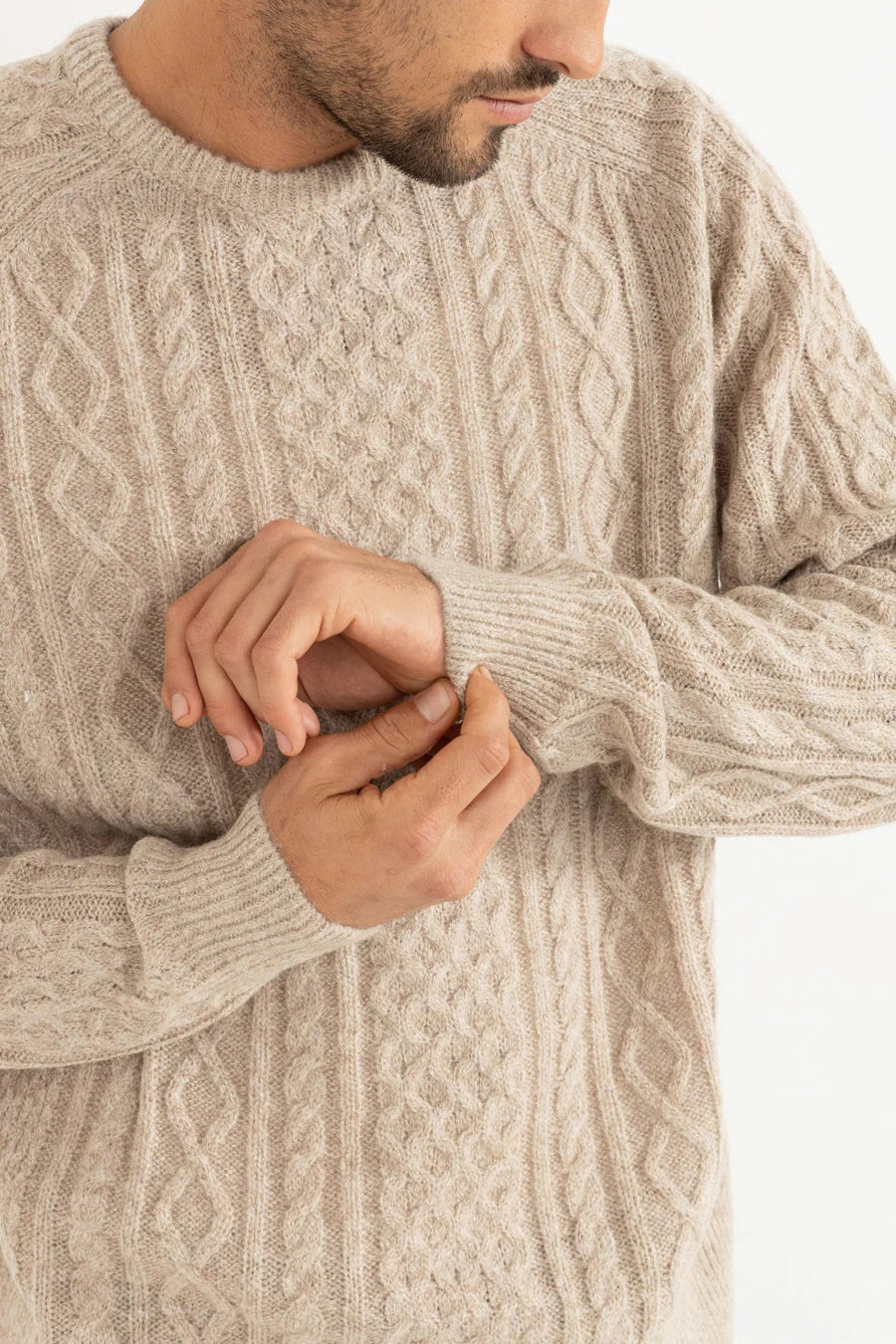 The Mohair Fisherman’s Knit in Oatmeal is a classic addition to any wardrobe. Featuring a standard fit, this cable knit offers ribbed finishes on the collar, sleeves, and hem. Designed for year-round comfort, this knit ensures an effortlessly refined look.