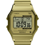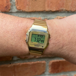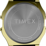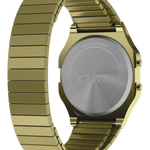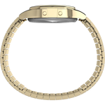 Featuring a sleek gold-tone case and lens, paired with a stainless-steel Perfect Fit expansion band that adjusts without tools, this fun retro design includes a date display, stopwatch, and alarm.