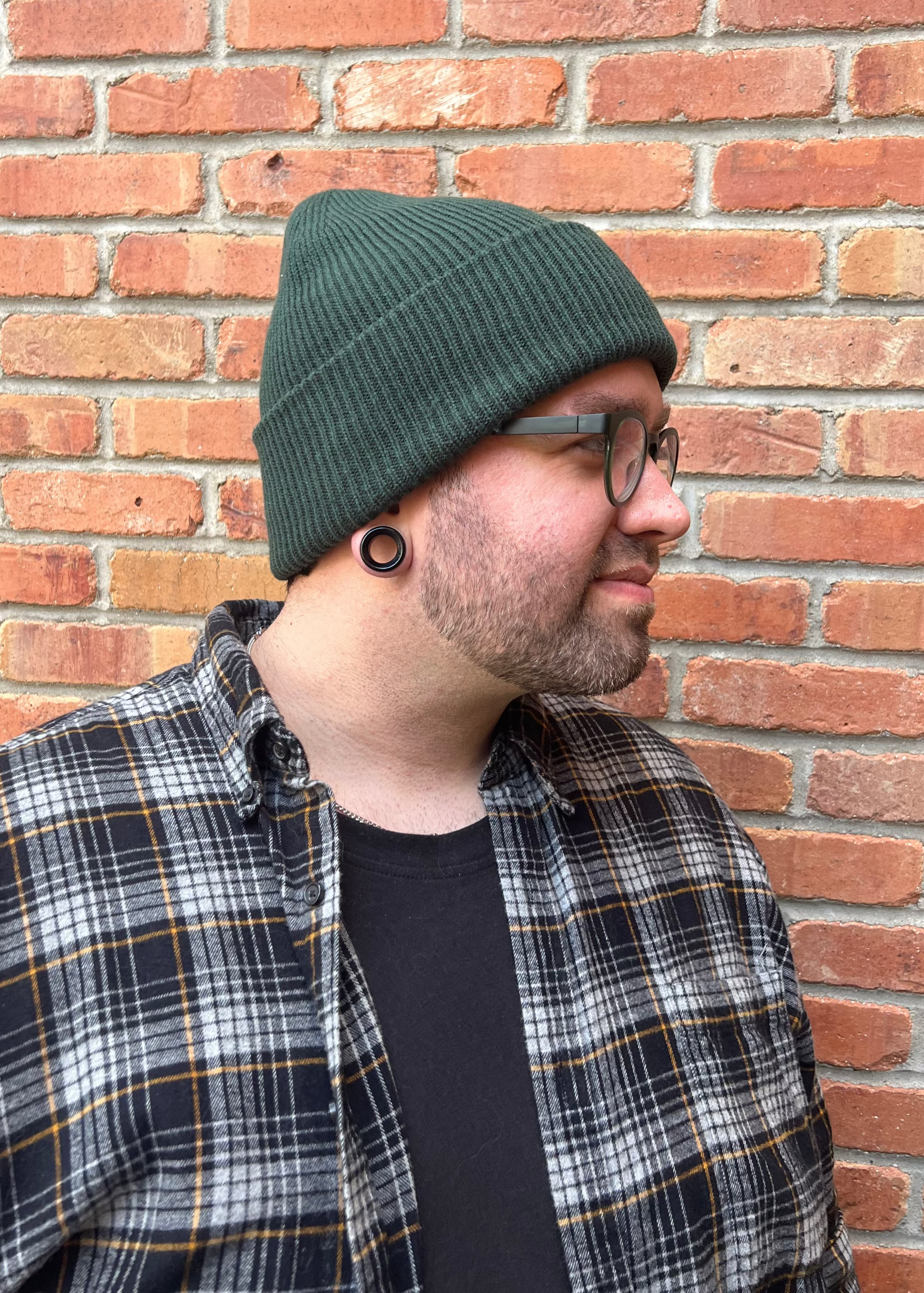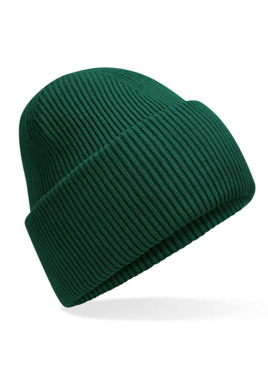 Made from 100% recycled polyester, warm double knit, ribbed.