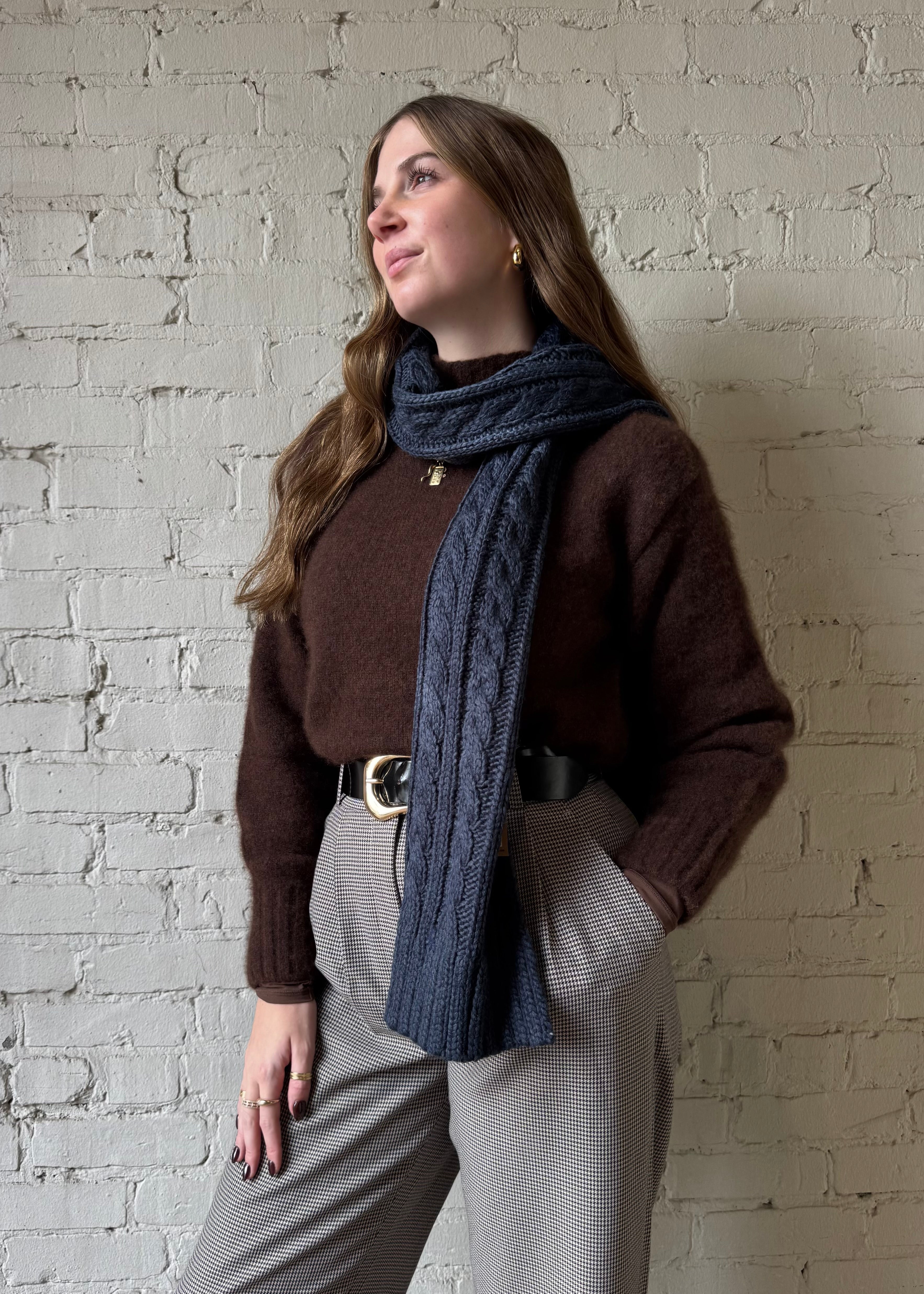 Cable Knit Scarf - Navy