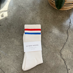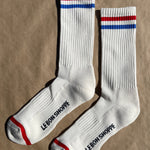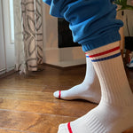 The Boyfriend Socks Extended is a calf length sport sock. They have a classic vintage sporty look but can be styled with all of your daytime looks and our favorite socks to lounge around the house.