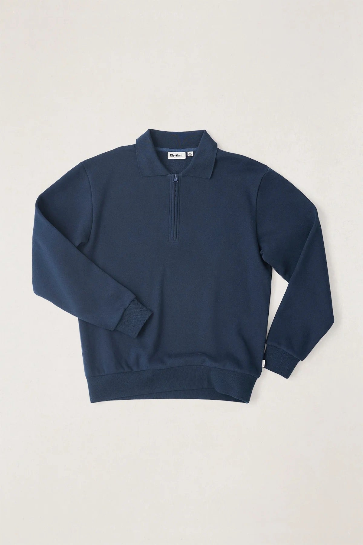 A quarter-zip fleece made for layering. Features contrast block panels, zip closure, and a woven Rhythm label for a clean finish.