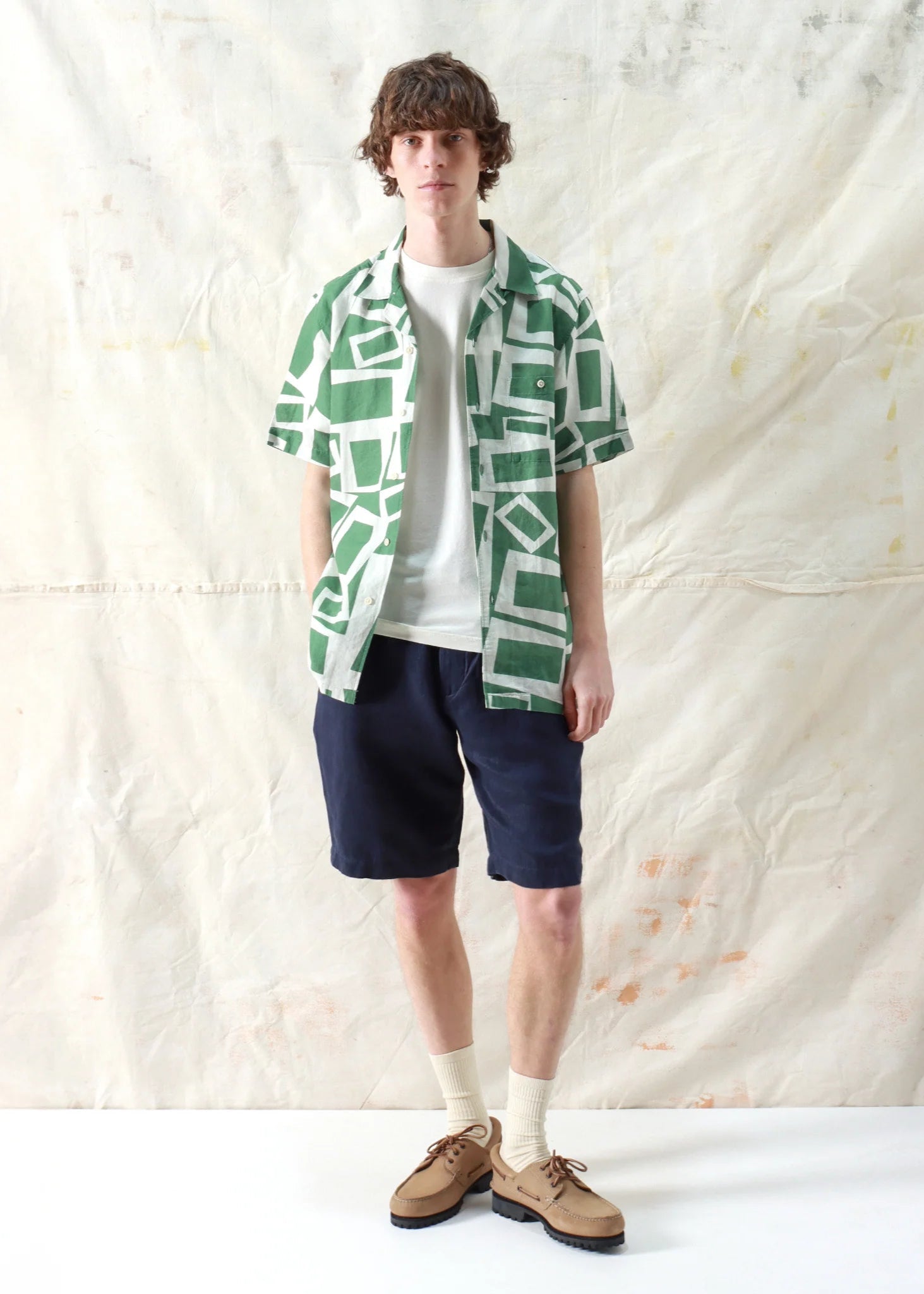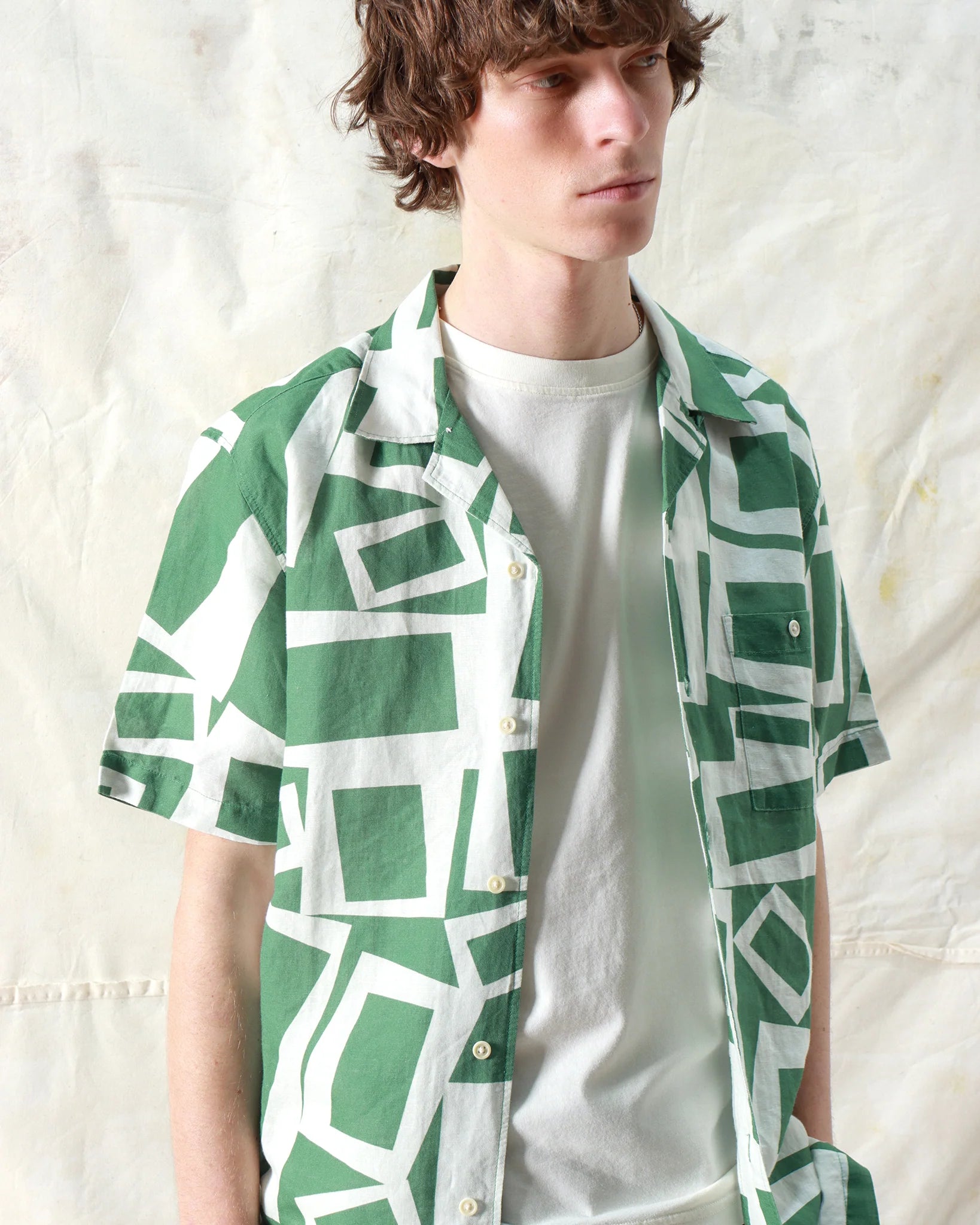 A relaxed short-sleeve summer shirt made from breathable slub cotton with a bold vertical stripe. Designed for versatility, it can be worn open for a casual look or fastened with the hidden button for a neater finish.