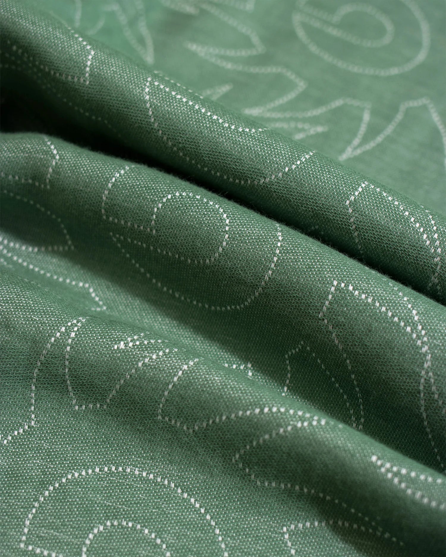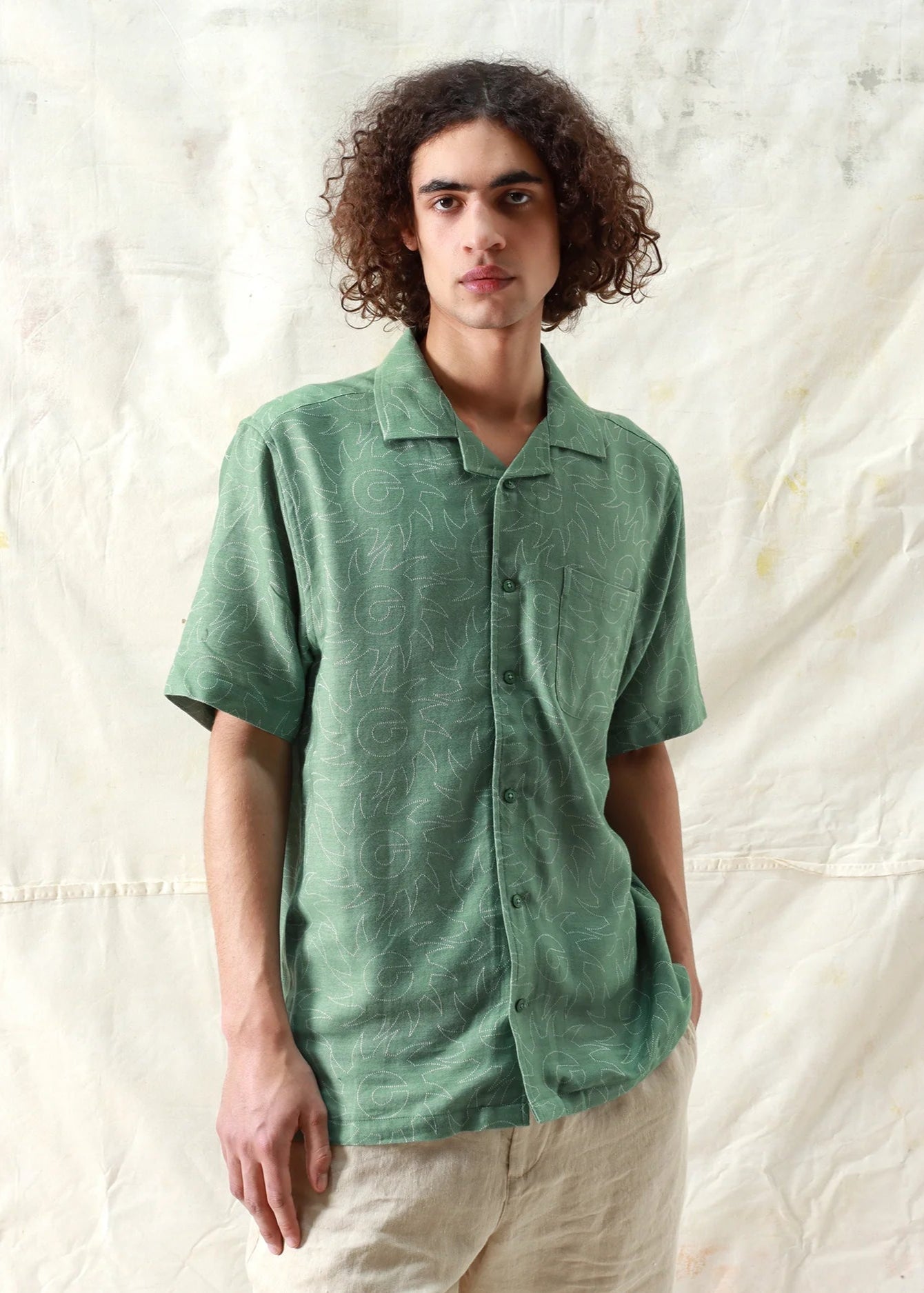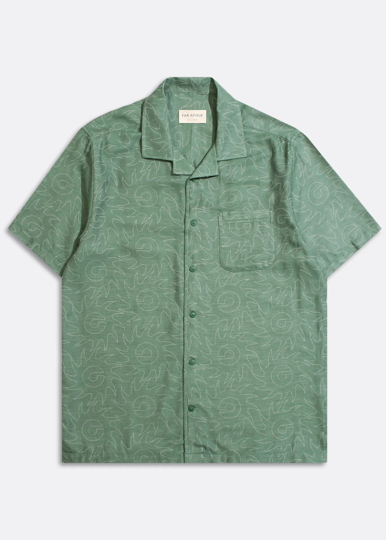 A relaxed short-sleeve open-collar shirt featuring a bold wave design woven directly into the fabric using a jacquard technique.