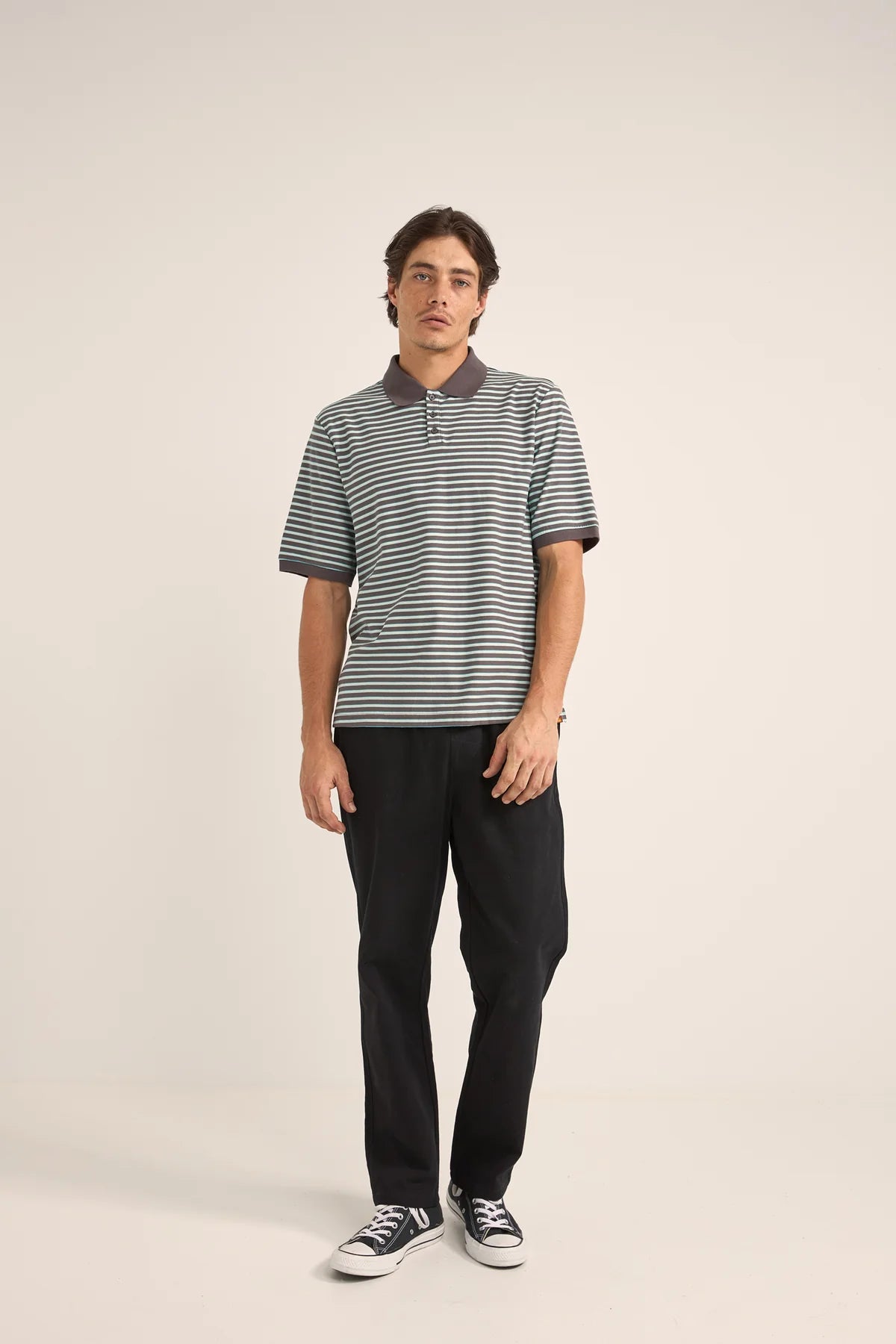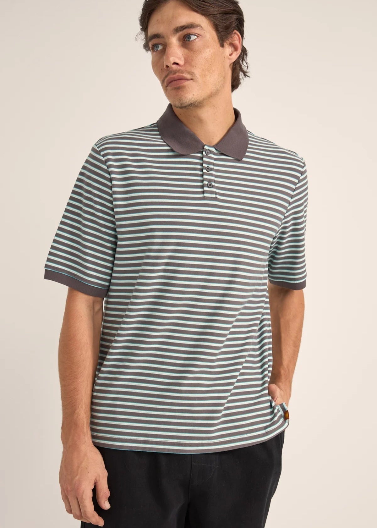 The Stripe SS Polo, made from 100% cotton, features a subtle stripe design for a classically refined yet laid-back look. Perfect for the relaxed, seaside lifestyle, it includes a button placket, ribbed collar, and Rhythm trims, and has been washed for a soft hand feel.