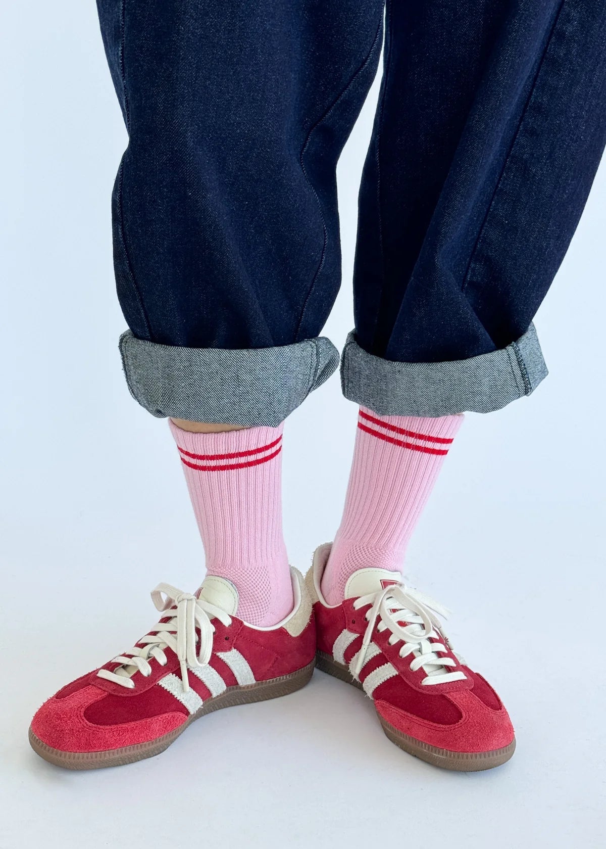 The Boyfriend Sock is a staff favorite. They are the perfect mix of function and fashion creating an effortless sporty vintage charm to any outfit. They are slightly longer than a classic crew and have a contrast double stripe. Durable and comfortable, they upgrade any outfit. Works with well-worn denim and Converse chucks.