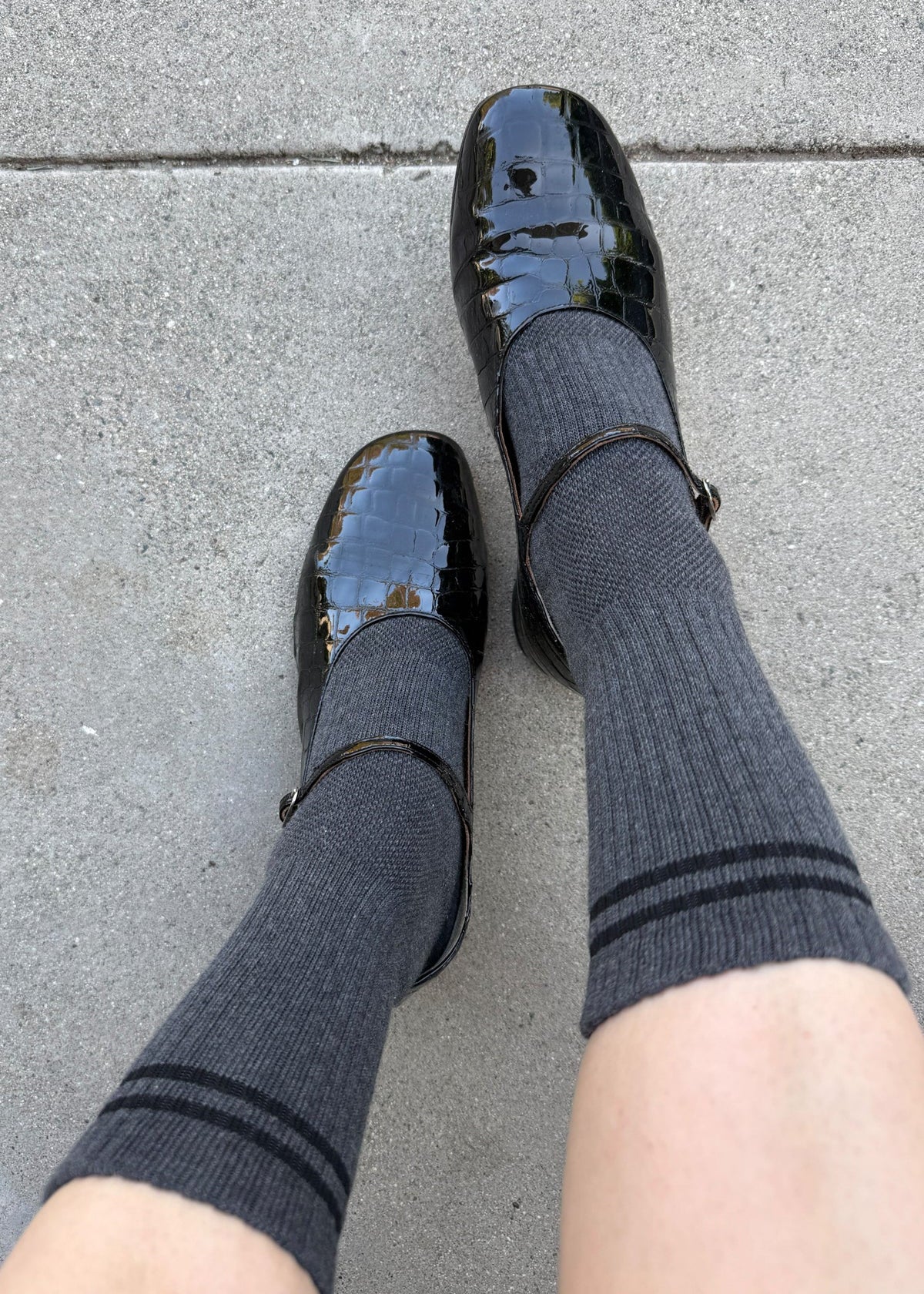 The Boyfriend Sock is a staff favorite. They are the perfect mix of function and fashion creating an effortless sporty vintage charm to any outfit. They are slightly longer than a classic crew and have a contrast double stripe. Durable and comfortable, they upgrade any outfit. Works with well-worn denim and Converse chucks.