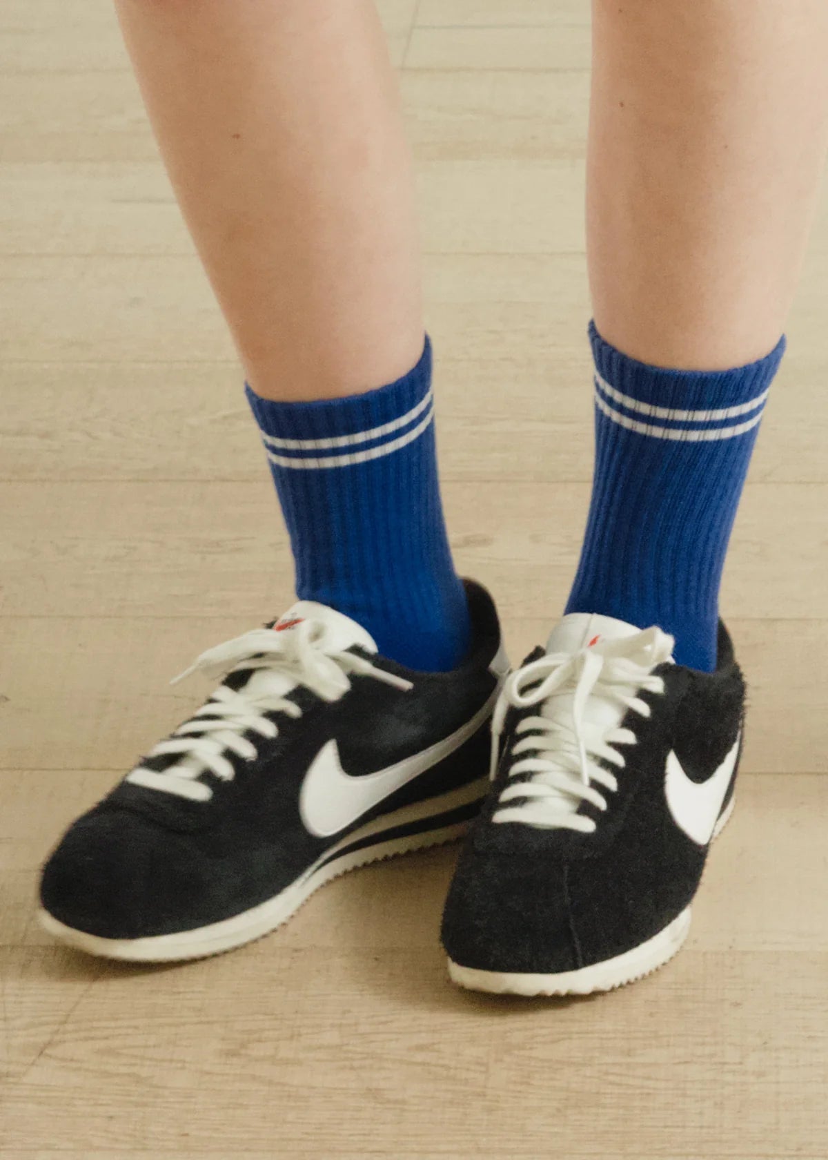 The Boyfriend Sock is a staff favorite. They are the perfect mix of function and fashion creating an effortless sporty vintage charm to any outfit. They are slightly longer than a classic crew and have a contrast double stripe. Durable and comfortable, they upgrade any outfit. Works with well-worn denim and Converse chucks.
