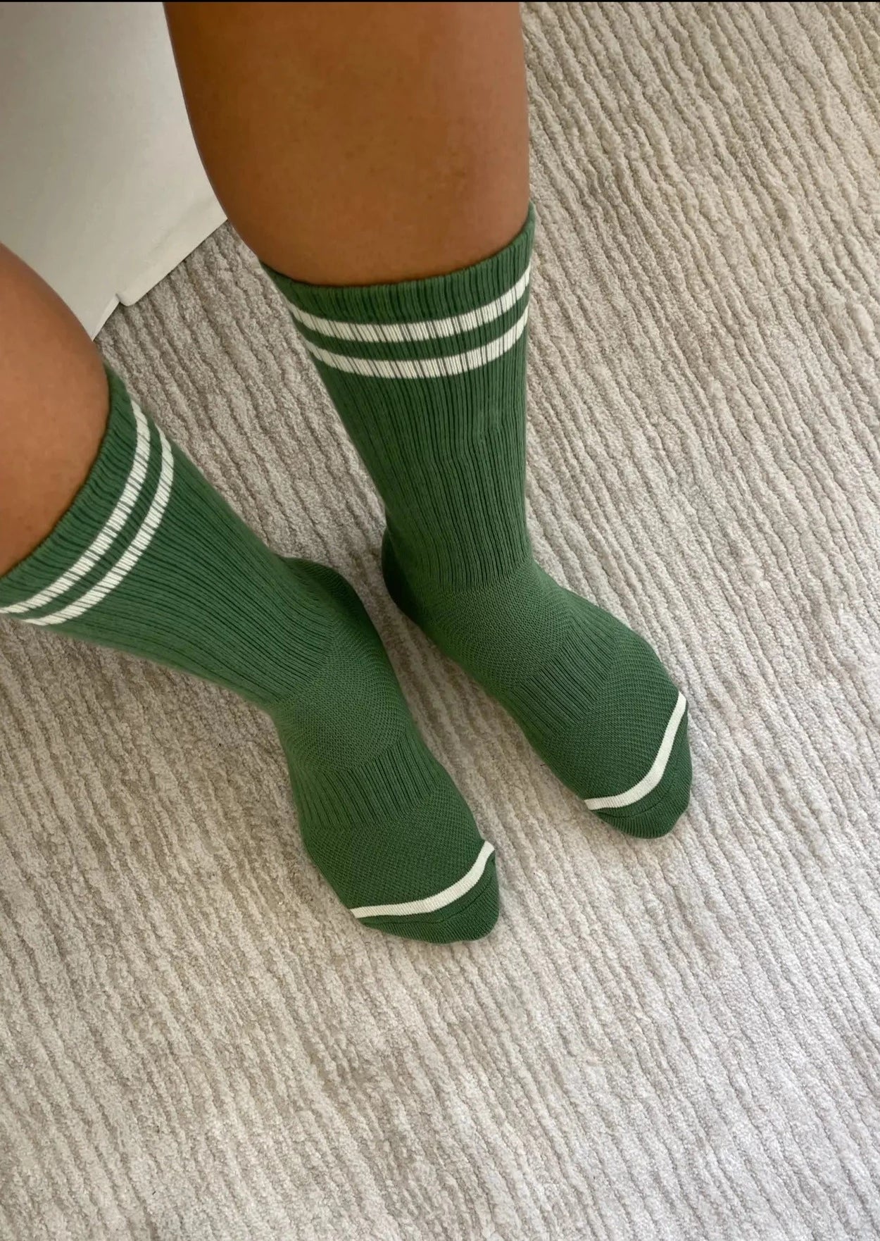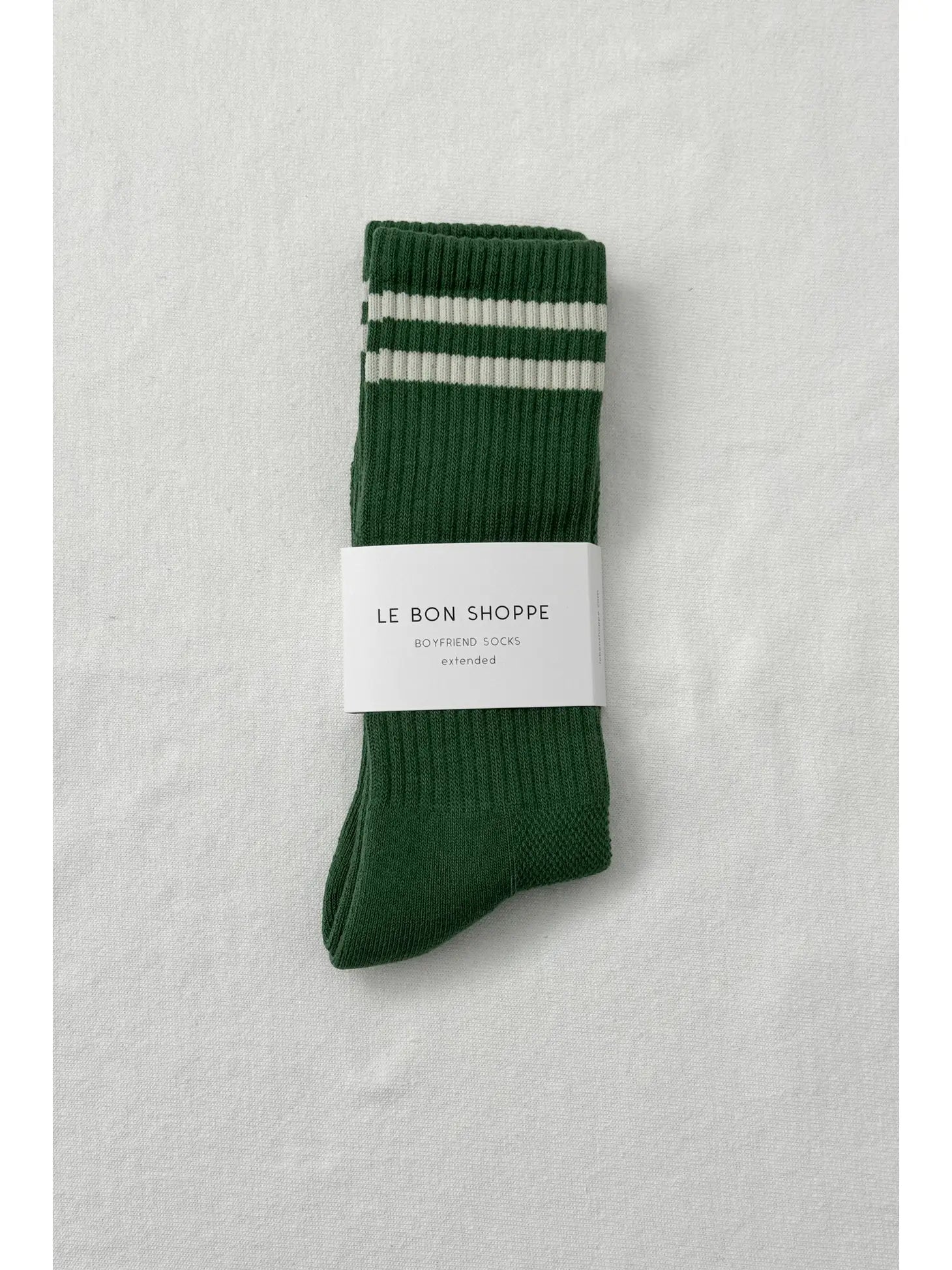 The Boyfriend Socks Extended is a calf length sport sock. They have a classic vintage sporty look but can be styled with all of your daytime looks and our favorite socks to lounge around the house.