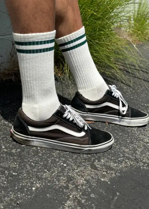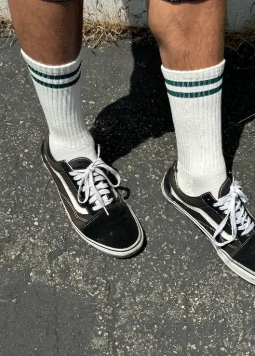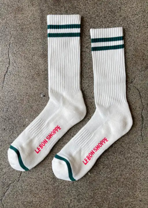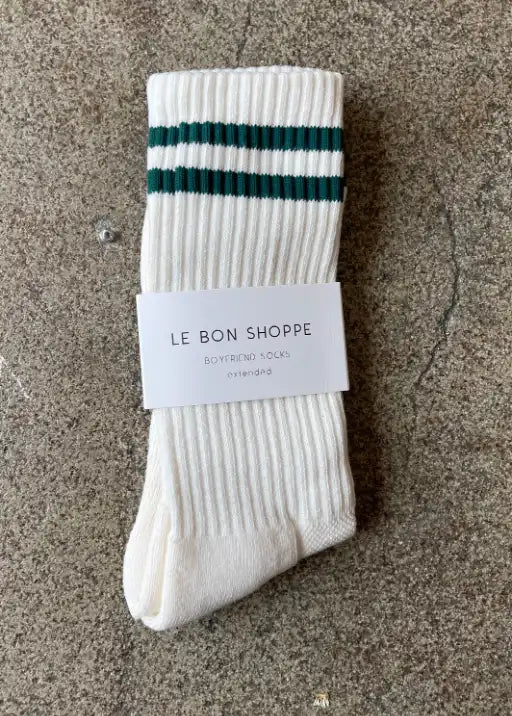The Boyfriend Socks Extended is a calf length sport sock. They have a classic vintage sporty look but can be styled with all of your daytime looks and our favorite socks to lounge around the house.