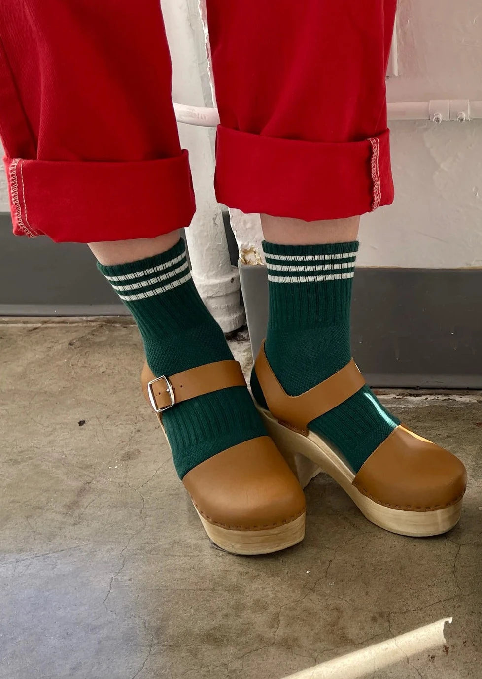 Super comfy ankle crew socks. These beauties feature a triple contrast stripe at the opening and a shorter classic crew sock length. She is a universally quintessential sock.