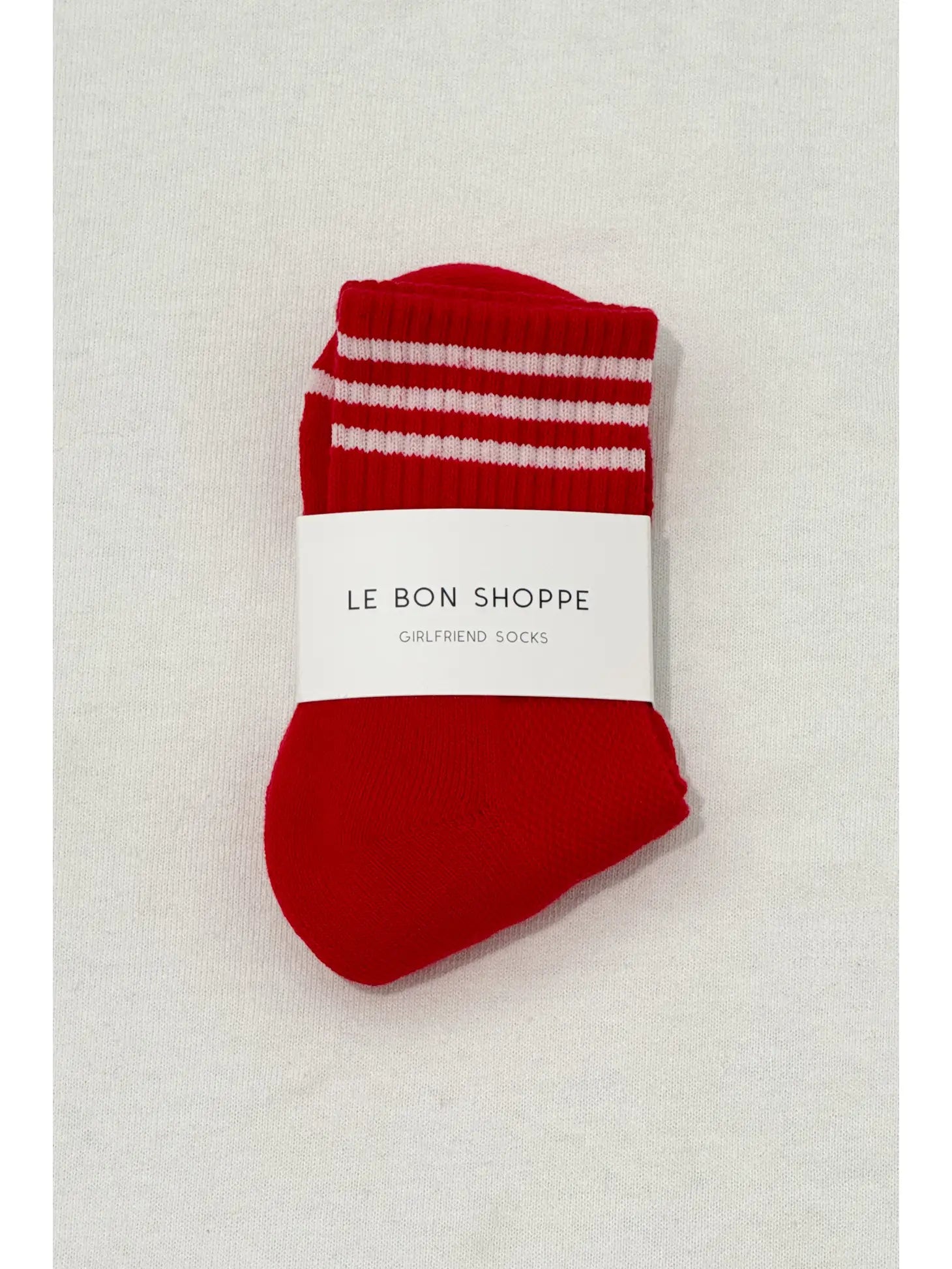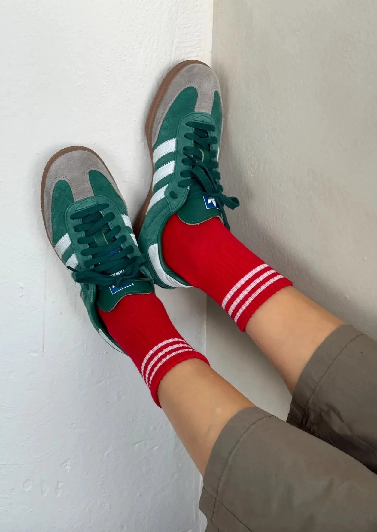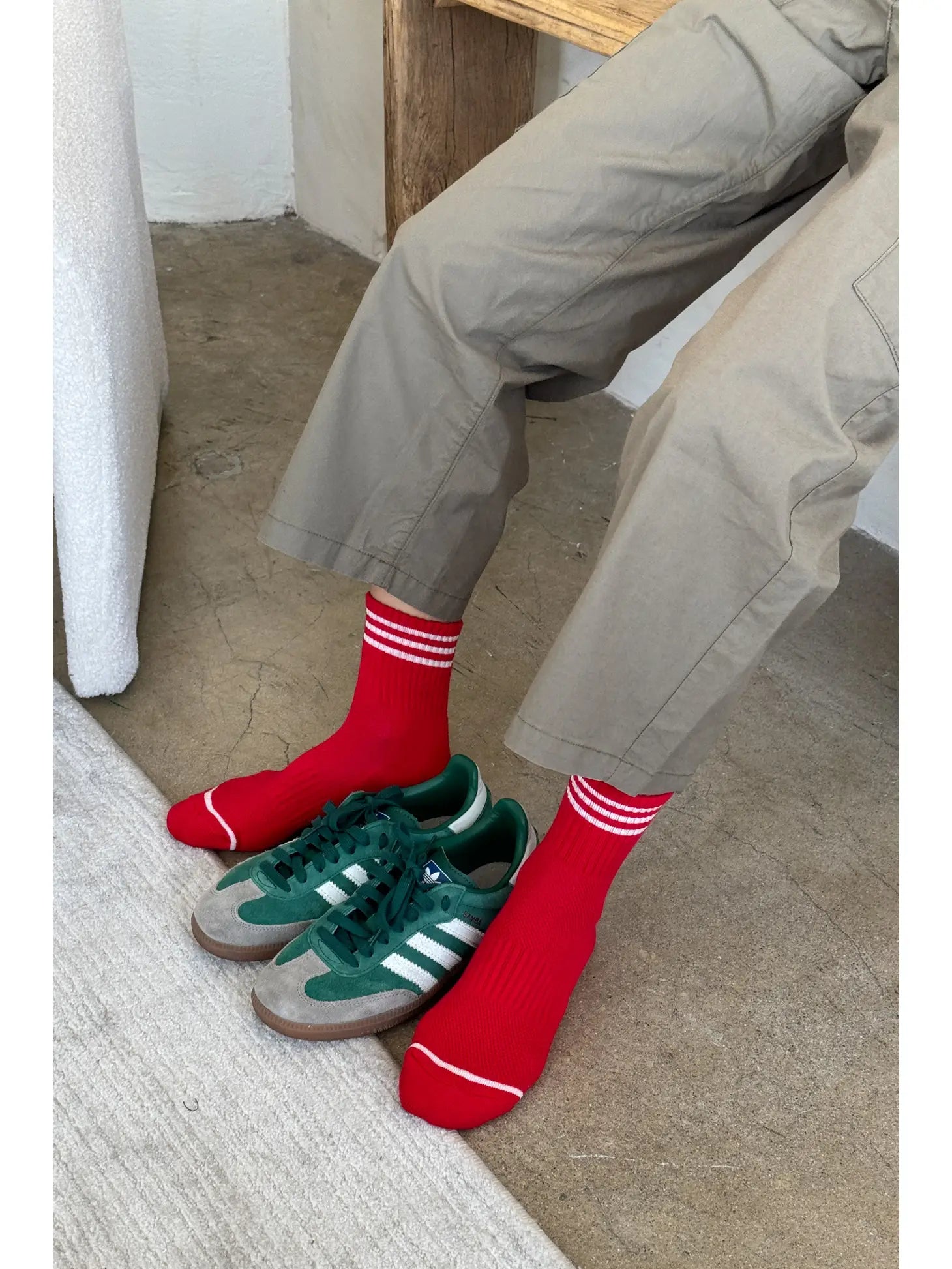 Super comfy ankle crew socks. These beauties feature a triple contrast stripe at the opening and a shorter classic crew sock length. She is a universally quintessential sock.