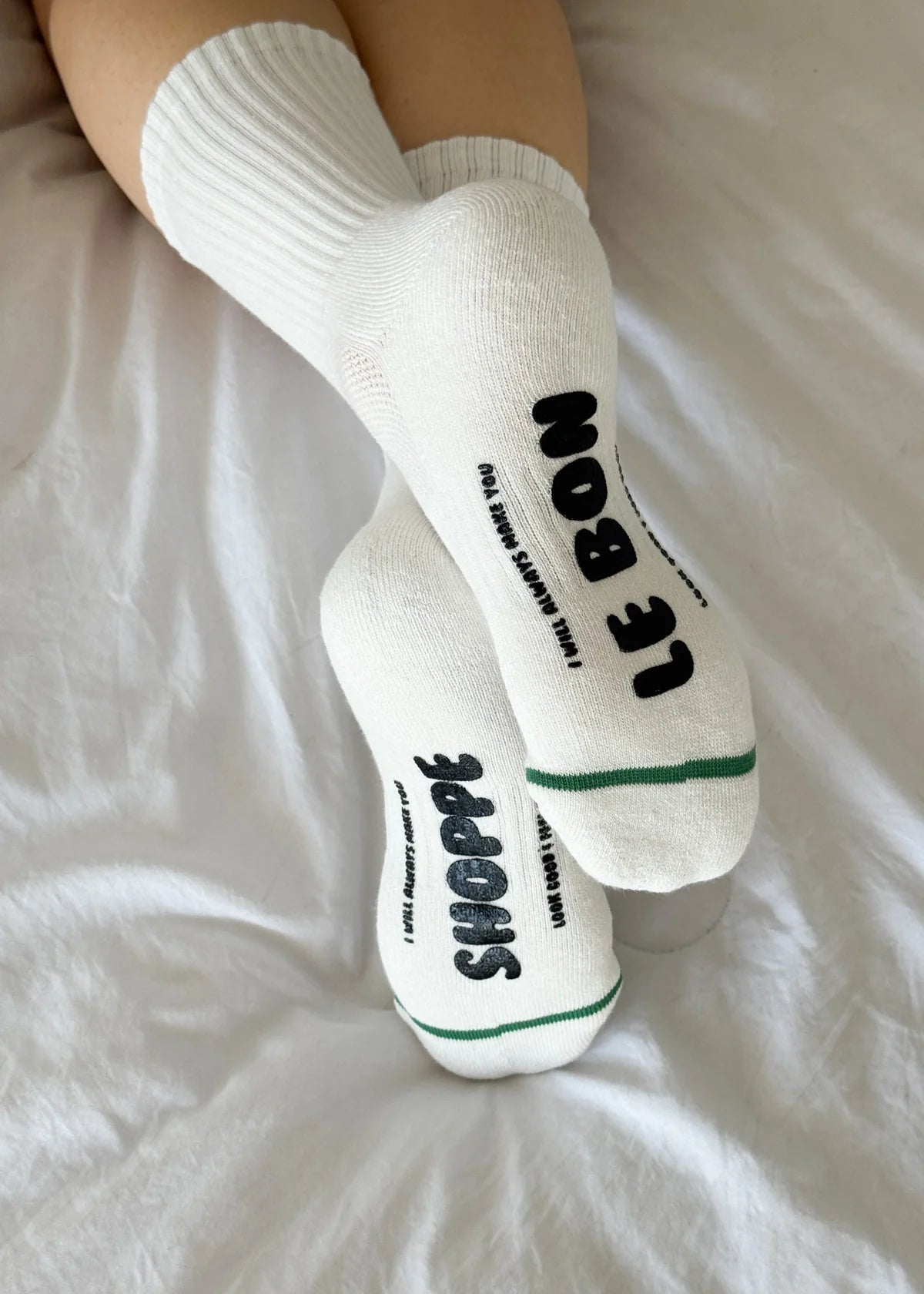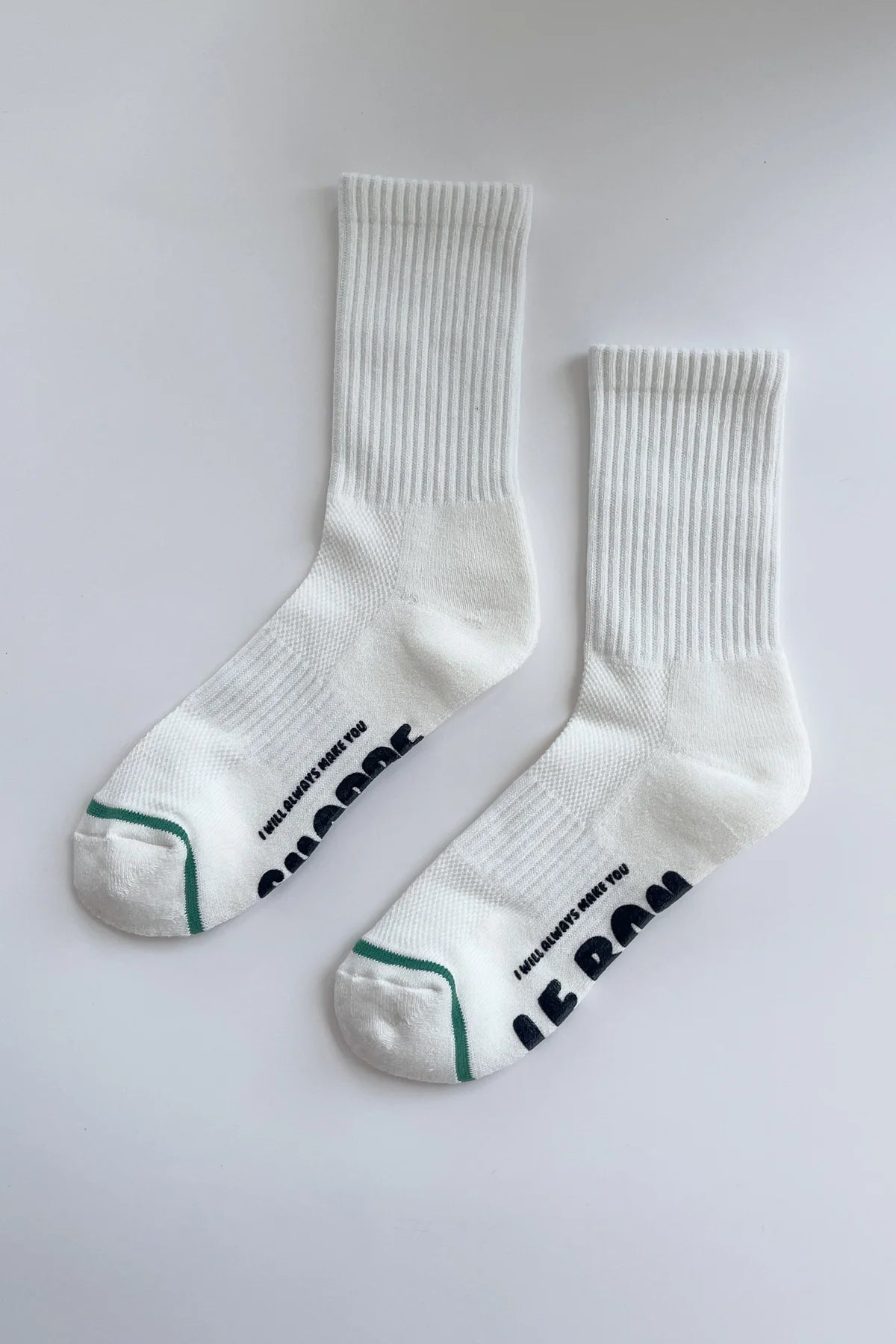 The introvert with a bubbly personality. Say hi to the Hugger Socks. Built on the same classic crew-length base as the Boyfriend Socks, with a clean, solid leg and a playful surprise underneath. A silicone motif on the sole adds a light grip, perfect for hugging flats, clogs, and slides.