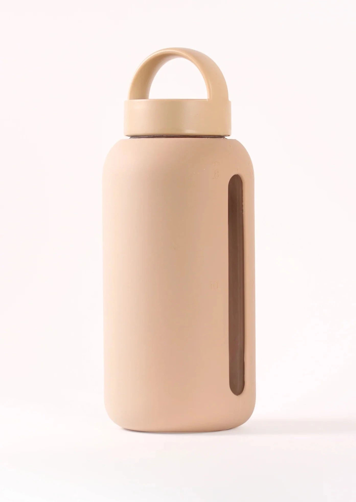 The first glass hydration tracking bottle designed to help you drink the recommended amount of water each day. Featuring simple-to-follow am/pm markings to guide you
