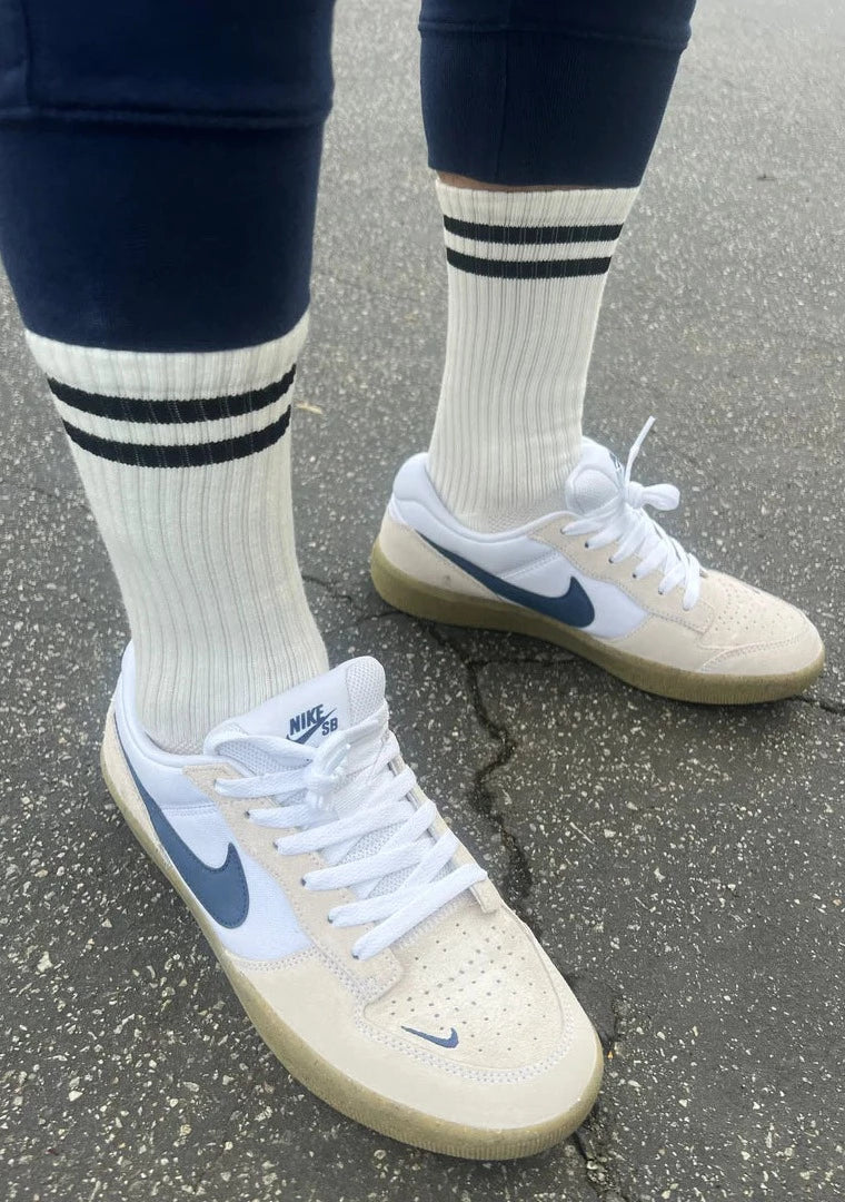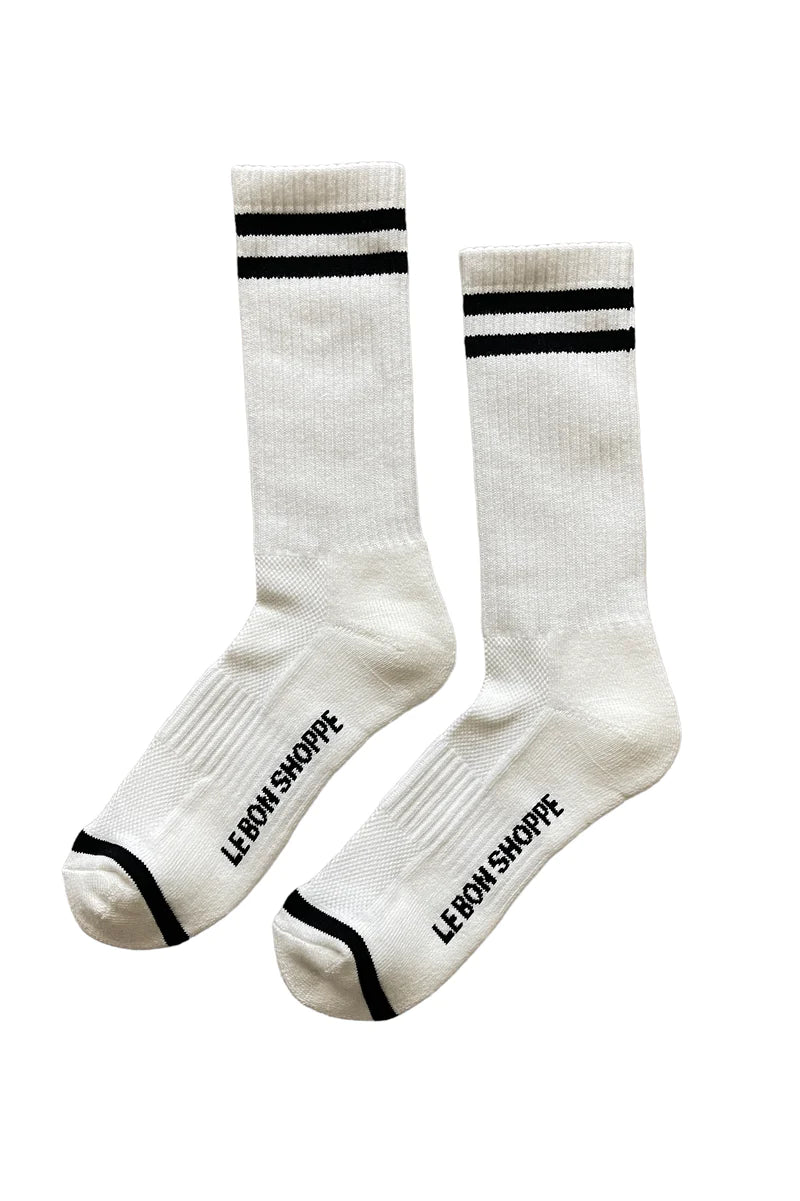 The Boyfriend Socks Extended is a calf length sport sock. They have a classic vintage sporty look but can be styled with all of your daytime looks and our favorite socks to lounge around the house.