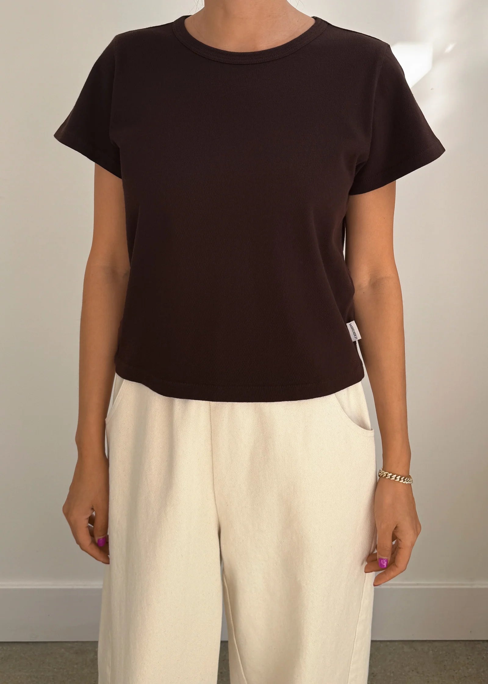 The quest for the perfect tee ends here. The first of its kind, The Little Boy Tee uses medium-weight 100% cotton premium jersey blend for a flattering slim fit with just the right amount of stretch. It features baby ribbed details and maintains a suitable cropped length. Consider this little tee the perfect piece to remain a cherished part of your wardrobe season after season. Garment washed and dyed, each tee shows off a beautiful natural worn-in look.