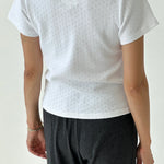 Crafted from ultra-soft cotton pointelle jersey, it offers a dreamy feel with a medium-weight drape. A high-quality staple designed to mix, match, and carry you through the seasons.
