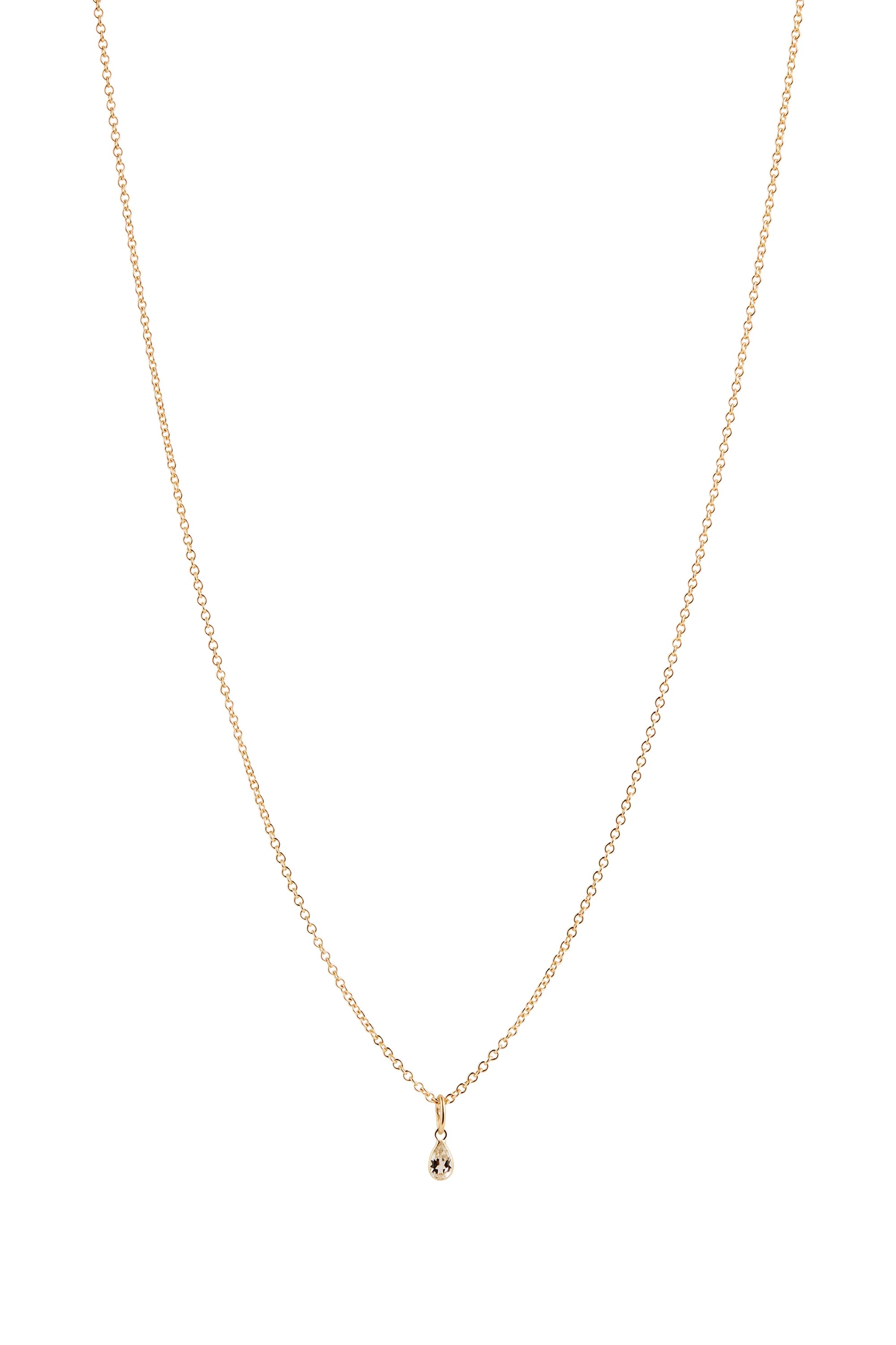 Featuring a delicate cable chain accented by a pear shaped White Topaz drop, the Basel necklace is a fine piece that is perfect for every day. Combine with your other favorites for a layered look or wear alone for a minimal look, the Basel necklace is refined perfection.