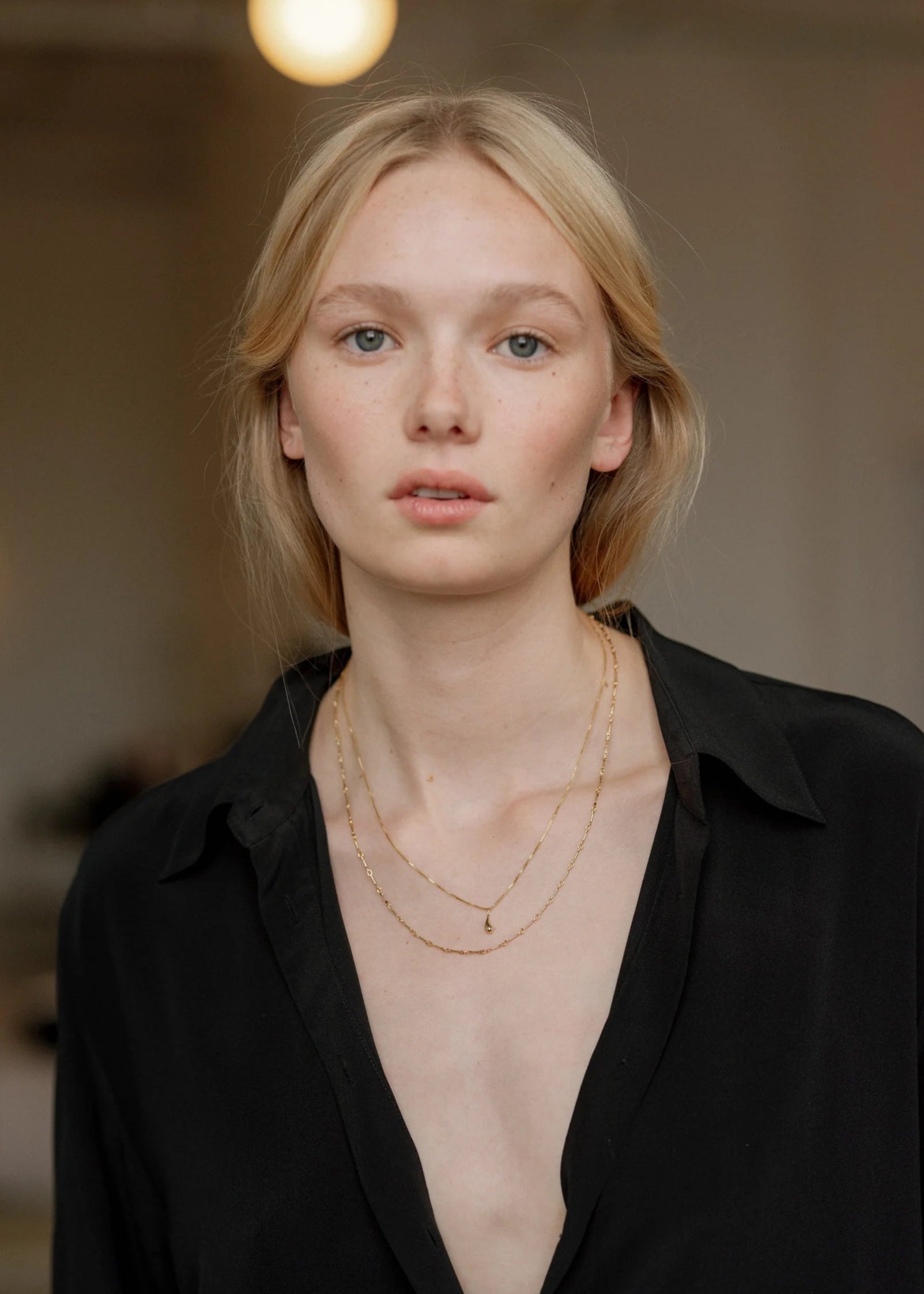 A classic linked bar chain made of 14k Gold Filled. Perfect for a minimal statement or for adding interest layered.