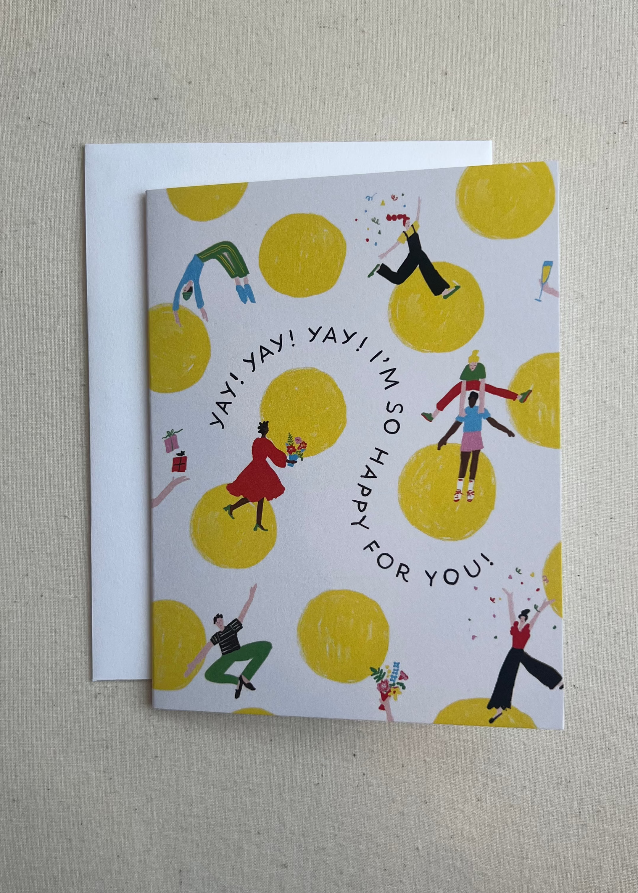 Let’s be real: some wins deserve a full-on dance party, and this cheerful card brings the confetti vibes! The Polka Dot Dance congratulations card is full of motion and joy, with celebratory characters dancing their hearts out against a backdrop of large, sunny yellow polka dots.