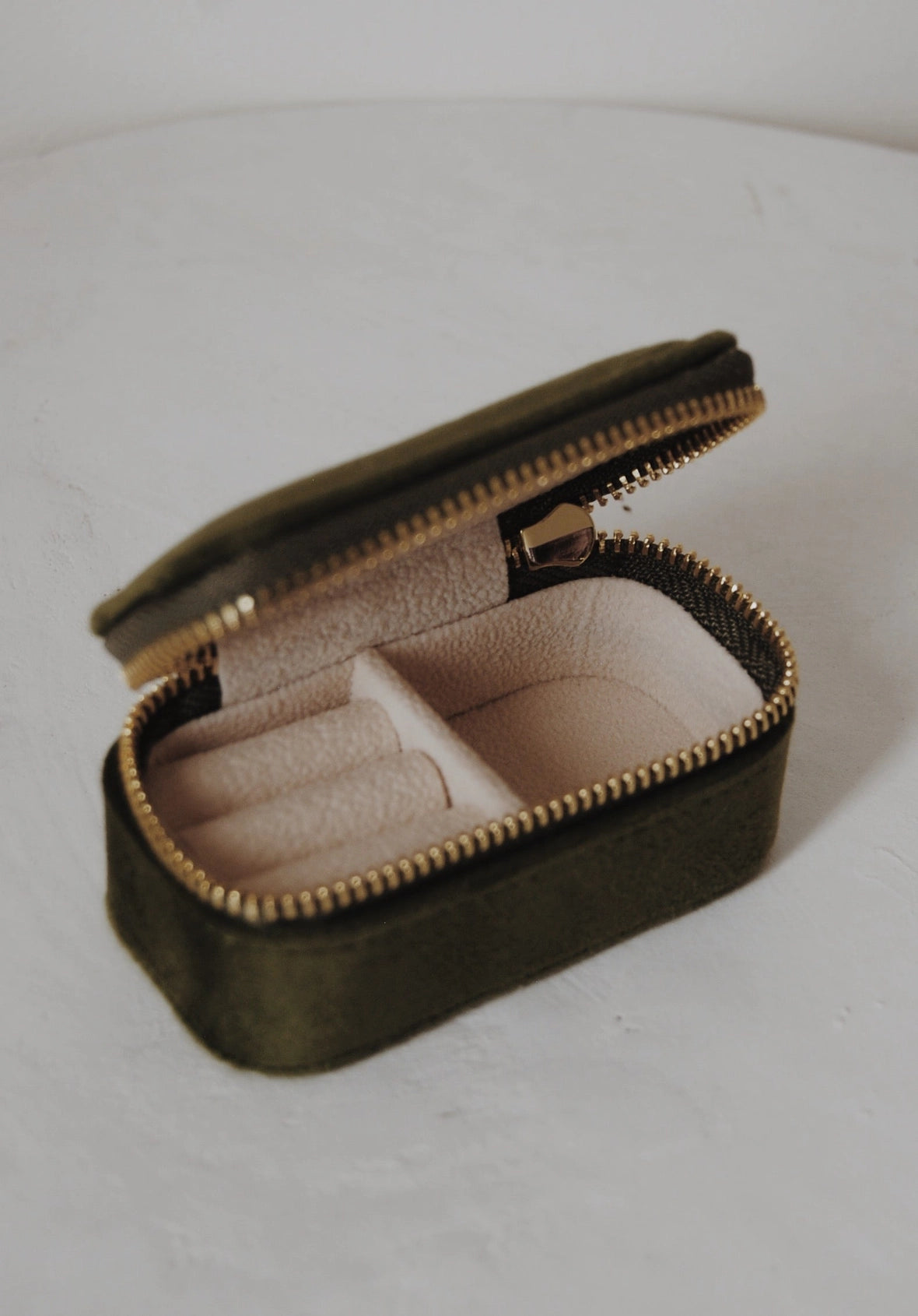 Velvet Travel Jewelry Box, perfect for holding your rings, earrings, necklaces, and treasures! Features a ring tray and extra space to hold your other lovely things.