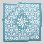 Pennsylvania Dutch Hex Stars inspire the medallion in the center of the Aster bandana, an auspicious symbol that brings luck to daily life and love. Surrounding this blessing is a field of flowers inspired by the Arts and Crafts movement. From the turn of the 20th century, this decorative style was rooted in medieval, romantic, and folk influences.