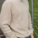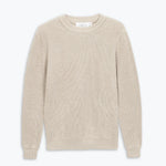 A chunky crewneck sweater knit with natural, heathered yarns in 100% organic cotton.